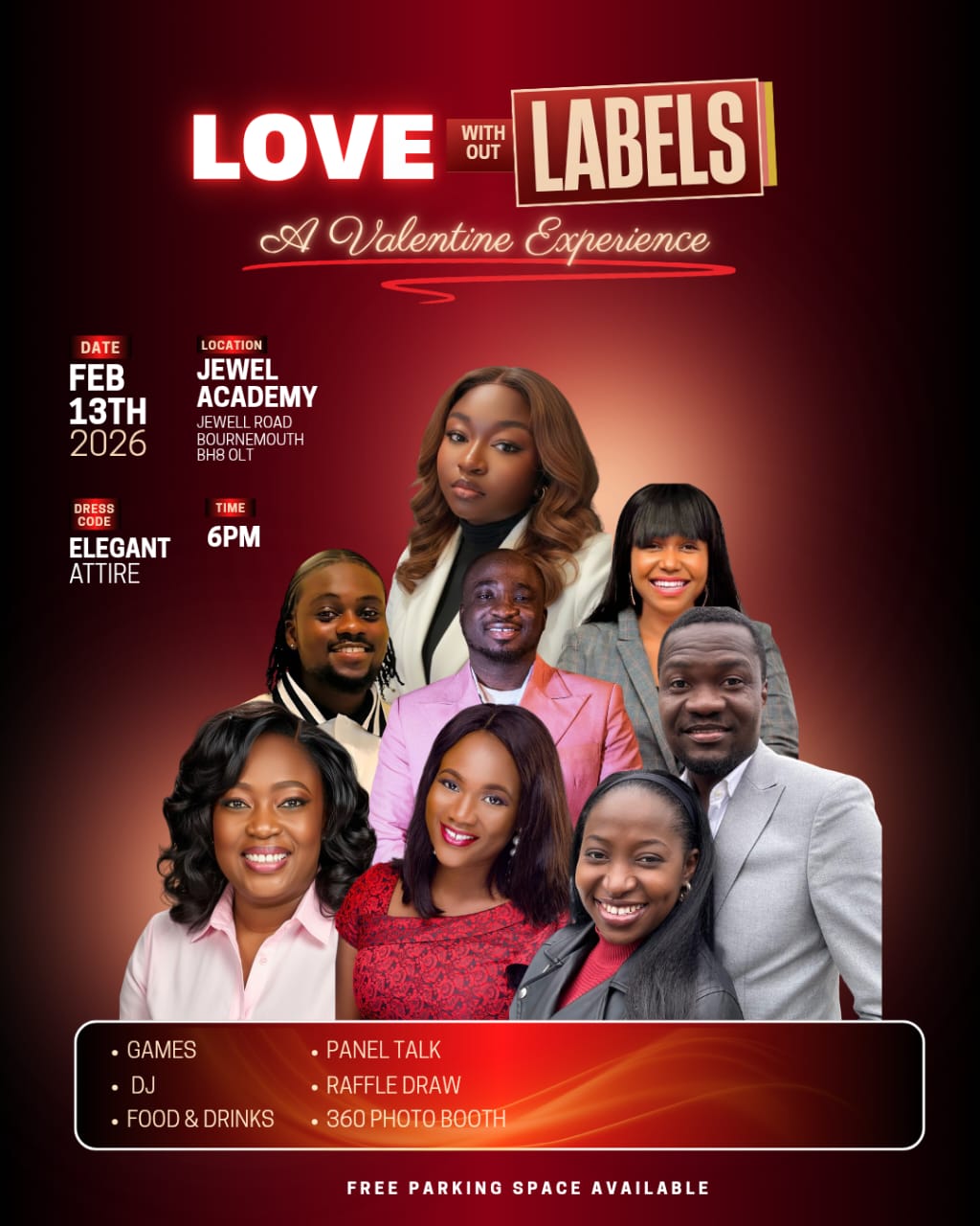 Come dressed elegantly in shades of love (red, pink, white, burgundy, nude) and immerse yourself in a beautifully curated Valentine’s celebration.