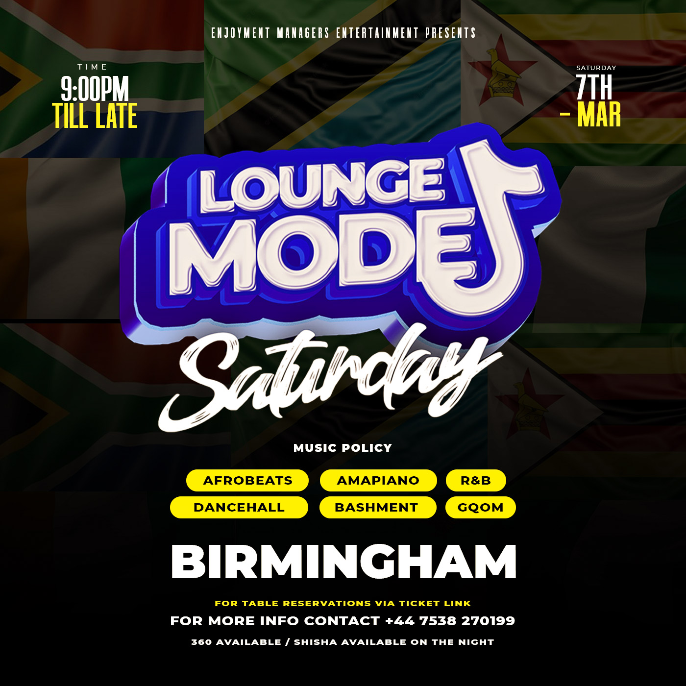 Come party with your fav Hosts and MC’s for entertainment - also includes your favourite DJs playing The Best of Afrobeats and International hits Amapiano, GRM Daily throwbacks, Zimdancehall, HipHop, Gqom, RnB and Bashment !