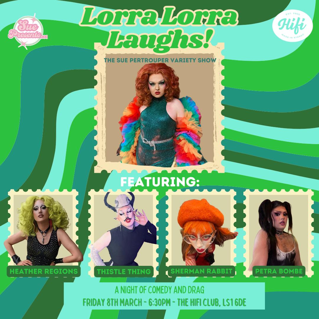 Lorra Lorra Laughs! - The Sue Pertrouper Variety Show. A night of the campest comedy you could imagine.