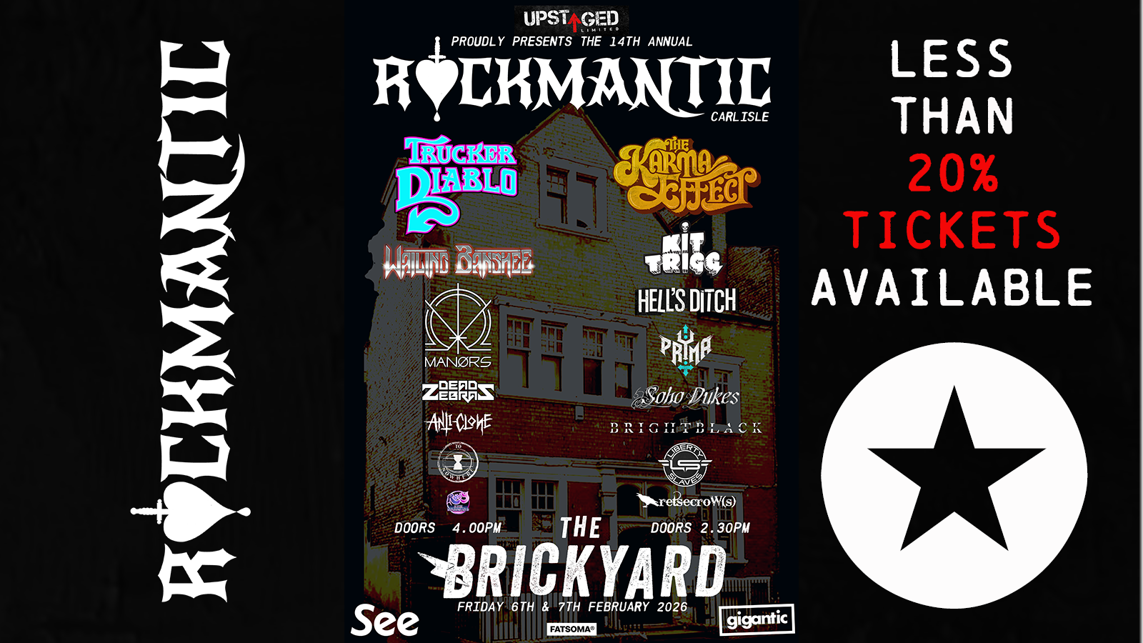 Rockmantic Weekender returns to Carlisle for its 14th annual event at Cumbria’s premier live music venue The Brickyard. The line up consists of 15 bands over two days & will be headlined by firm fan favourites The Karma Effect & Trucker Diablo. Earlybird tickets sold out in a matter of hours and there’s now less than 40% remaining with still more than 6 months until the very popular national event begins.