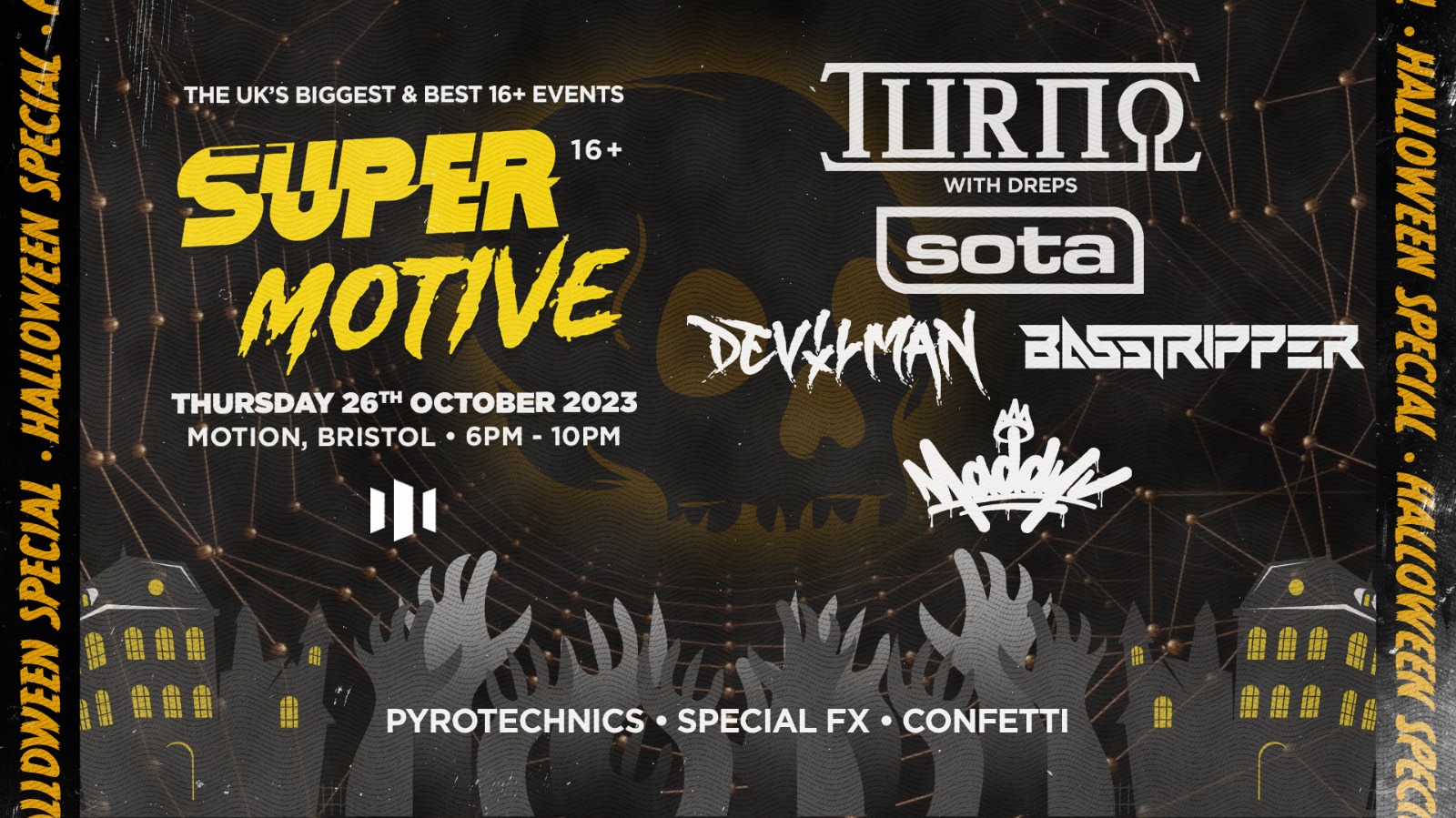 Motive & Super Sonix presents SuperMotive... The 2 biggest 16+ brands in the UK link up for a monster Halloween event at Motion, Bristol on Thursday 26th October! 👻😈