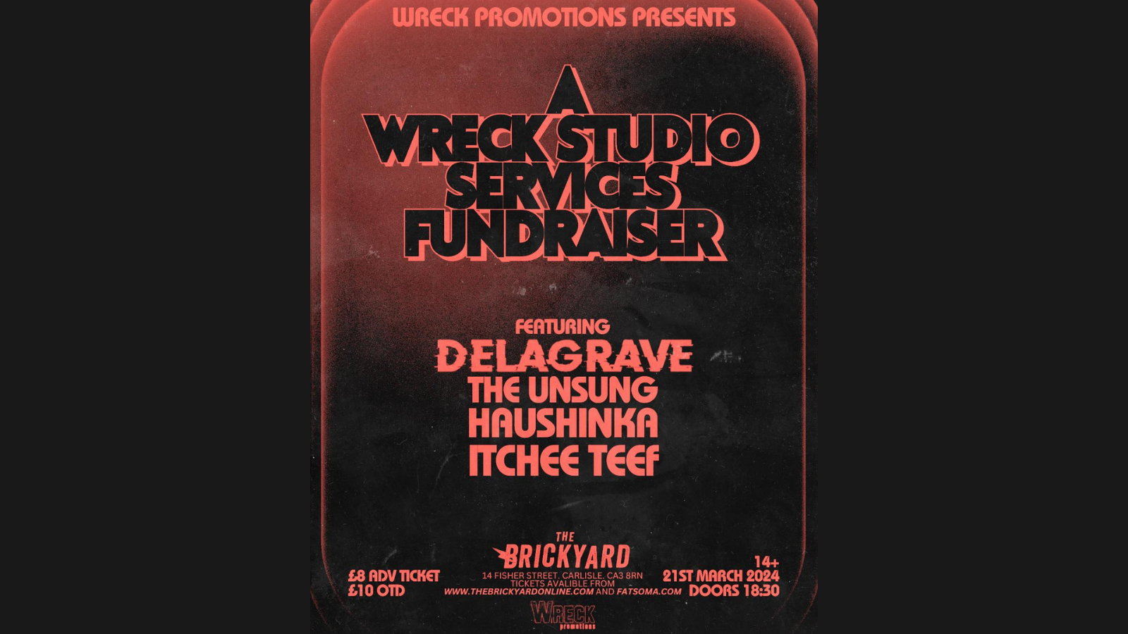 Wreck promotions proudly presents a Wreck Studio’s fundraiser event - our aim, to fund upgrades and renovations to our studio!