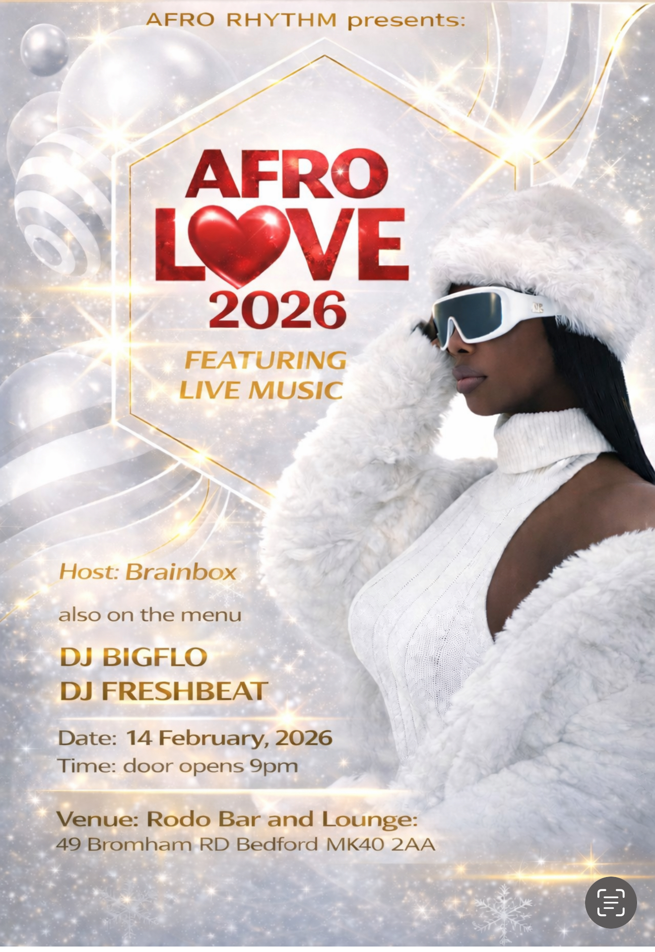 We proudly present Afrolove 2026, featuring live performances by Alambus and Bhelcanto Band in Bedford.
