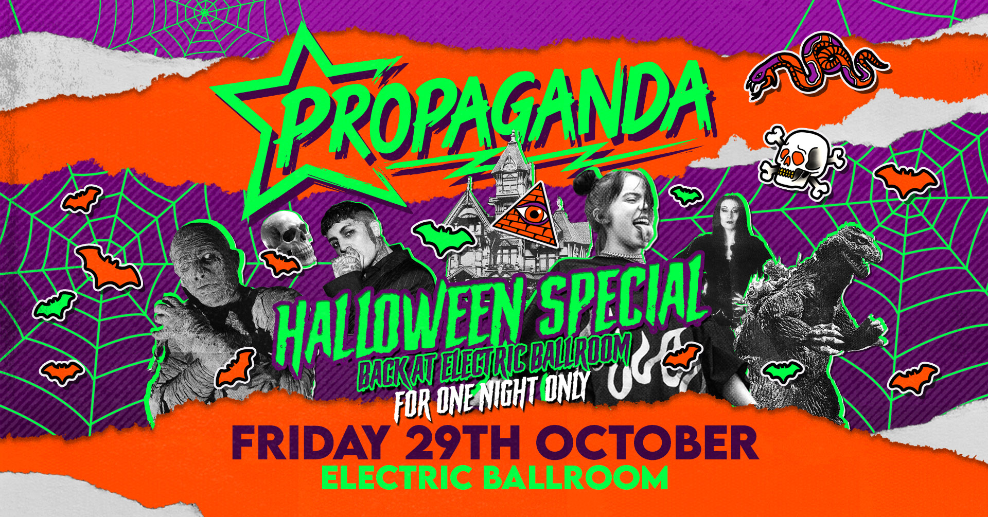 Round up your favourite ghoulfriends, hop on your brooms, and have a truly wicked night!!!!! Trick or treat yo'self at Propaganda's famous Halloween Friday Special! We're here to scare you senseless with a spooky Halloween Party at the freaky Electric Ballroom! We'll be slaughtering the haunted venue with gruesome decor to provide you with the ultimate house of horrors, with shocking surprises and tricks and treats all night long!?