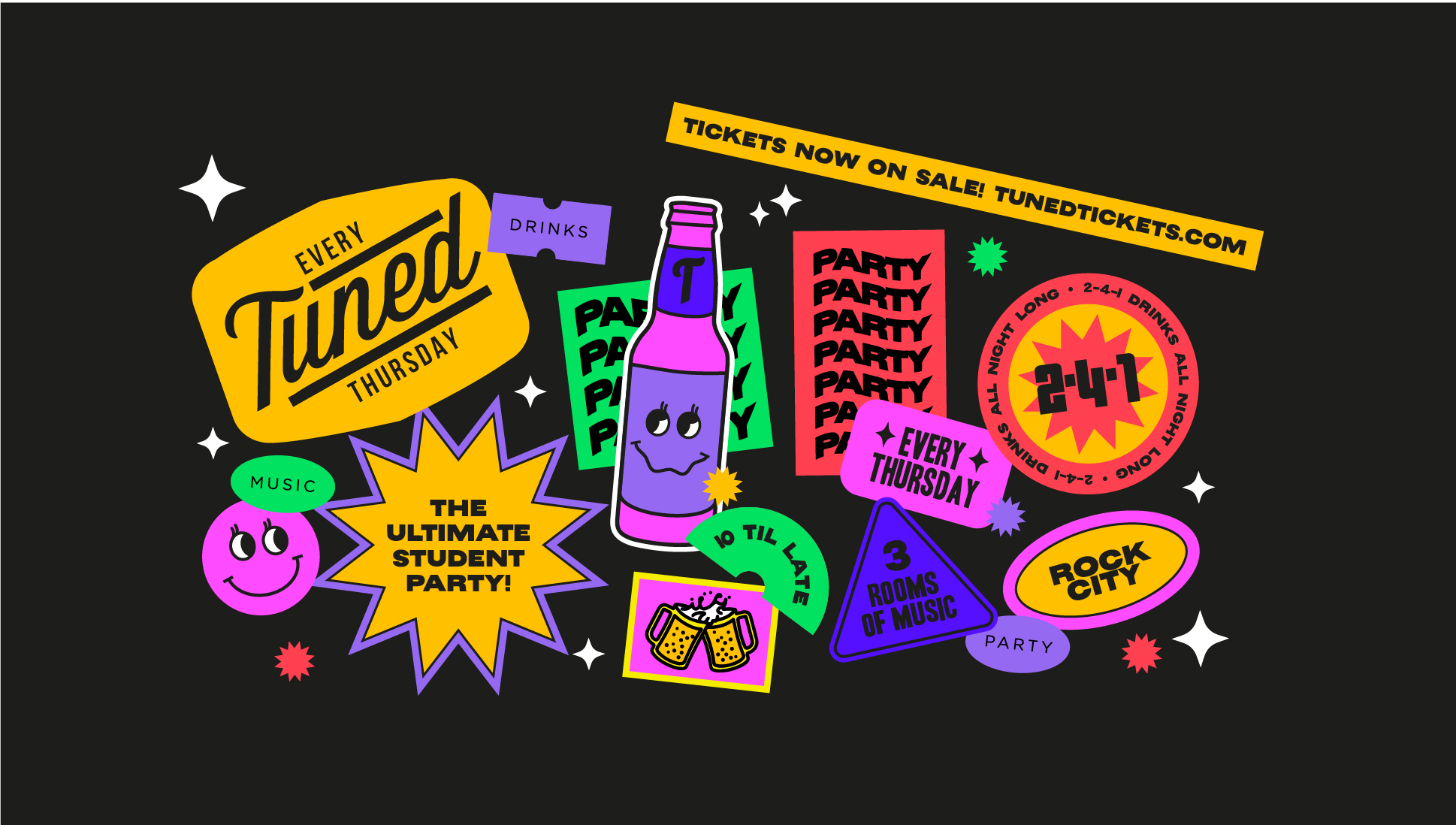 🎉 TUNED is Nottingham’s BIGGEST student night! We take over Rock City every Thursday and have 2-4-1 drinks all night long! 🎉