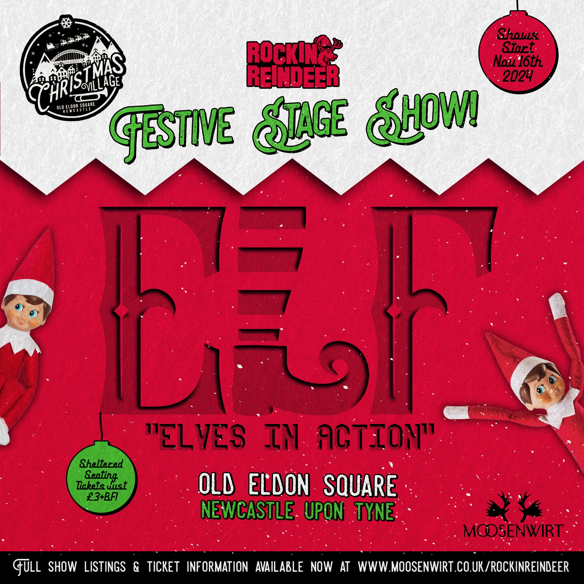 Join the jolly, lively Christmas Village elves in a one-of-a-kind, fun-packed extravaganza! Elves in Action promises a festive adventure filled with energy, excitement, and plenty of laughter. Watch as the elves bring the holiday spirit to life with their hilarious antics, entertaining party games, and festive sing-alongs. The whole family can jump in, with interactive dancing and games guaranteed to get everyone moving. Kids will love the elves’ playful energy, and adults won’t be able to resist joining in the fun. This heartwarming show will have everyone feeling merry and bright from start to finish!