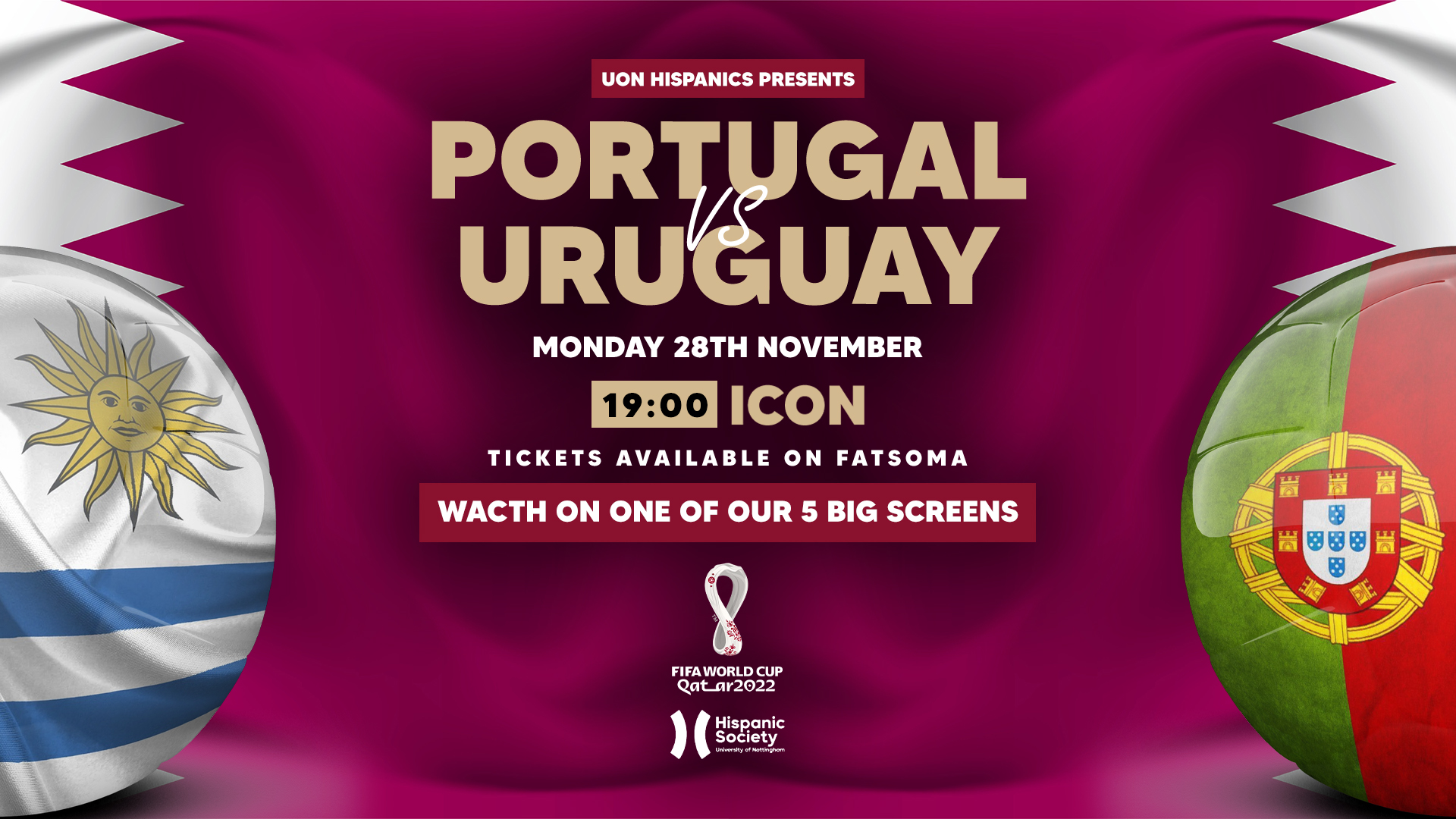 Join us at ICON for the big match as Portugal takes on Uruguay.