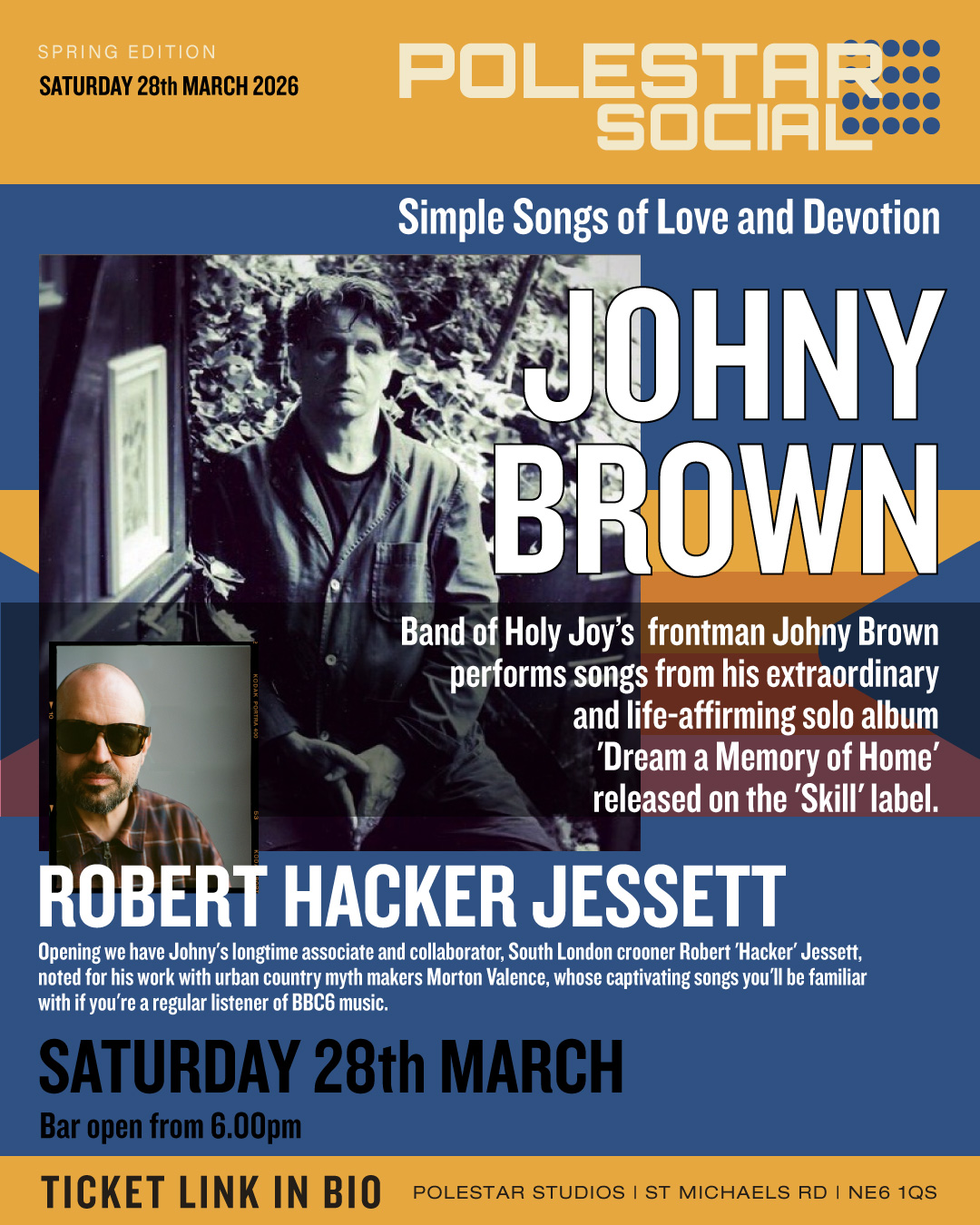 Polestar studios welcomes Band of Holy Joy’s frontman Johny Brown who will performs songs from his extraordinary and life-affirming solo album 'Dream a Memory of Home' - released on the 'Skill' label.