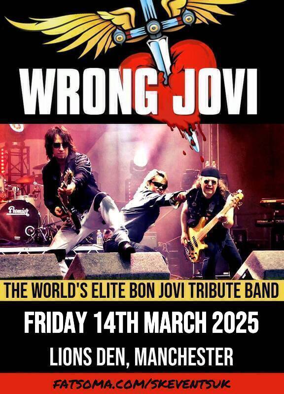 Catch the multi award winning Bon Jovi tribute band "Wrong Jovi" live at Lions Den, Manchester on Friday 14th March 2025. The band will be blasting through a 90+ minute set of hits, fan favourites & more!