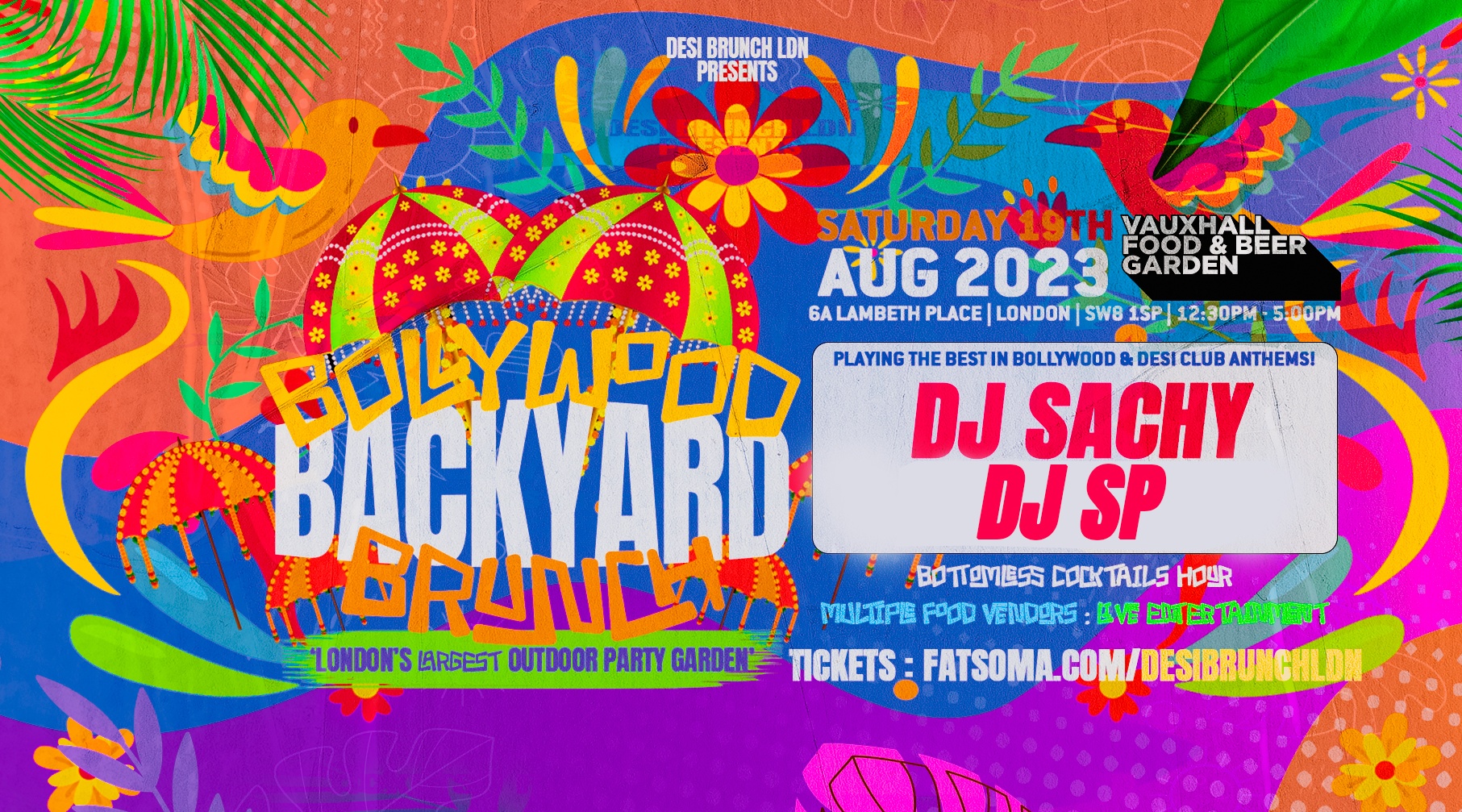 THE BOLLYWOOD BACKYARD BRUNCH IS AN ALL OUT BOLLYWOOD BRUNCH THAT BRINGS YOU ALL THE BOLLYWOOD CLASSICS ALL AFTERNOON IN THE LONDON SUN!
