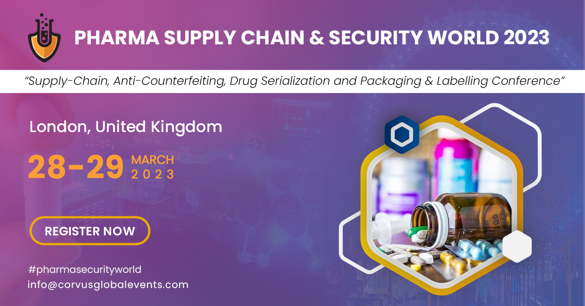 Corvus Global Events invites you to Pharma Supply Chain & Security World 2023 - Supply-Chain, Anti-Counterfeiting, Drug Serialization and Packaging & Labeling conference, which will have Pharma industry experts sharing various challenges faced, new strategies, case studies and use of innovative ideas, the conference will also offer opportunities to encourage partnerships and collaborations. In this conference you’ll not only discover innovative technologies, transformation strategies and collaboration methods, but how best to implement them to optimise your supply chain processes and strategies for drug anti-counterfeiting.
