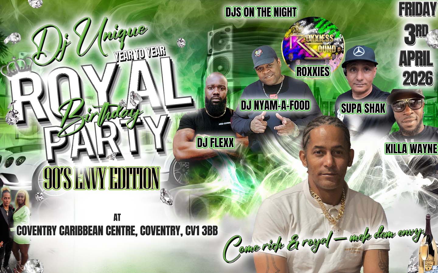 Step into royal energy as DJ Unique celebrates another year in style at his Royal Birthday Party — 90’s Envy Edition.