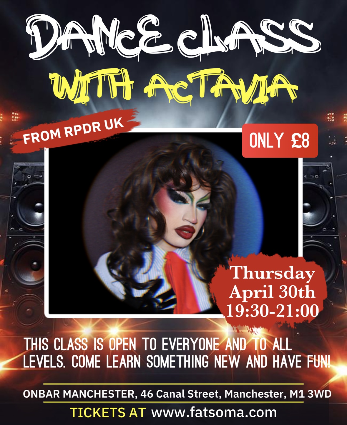 Come and join me (Actavia from Rupaul’s Drag Race UK) for a dance workshop that is open for all queer people (and ally’s) and queer performers. This dance workshop will be an open supportive space to learn something new, meet and socialise with others, and of course of loads of fun!