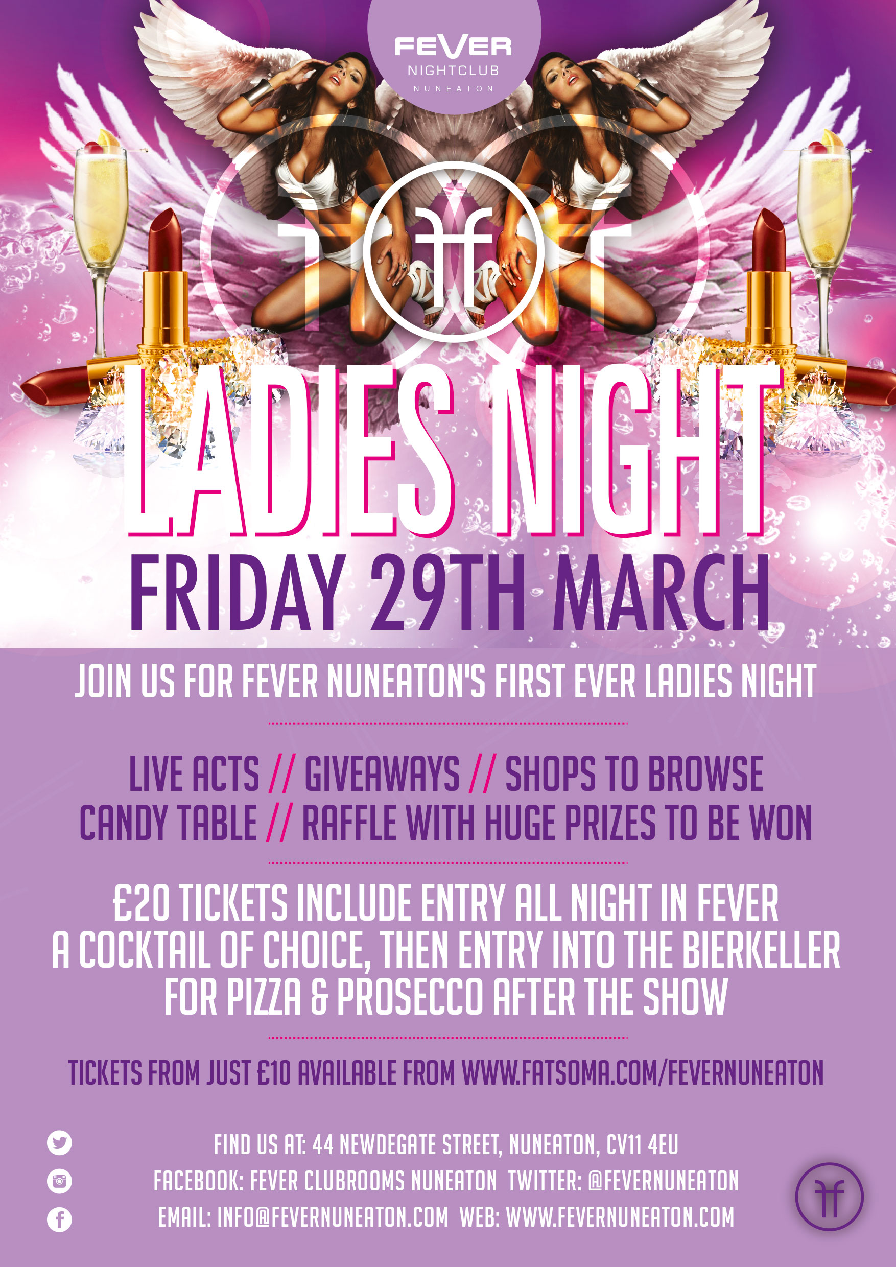 Join us on Friday 29th March 2019 for Fever Nuneaton's first EVER ladies night.