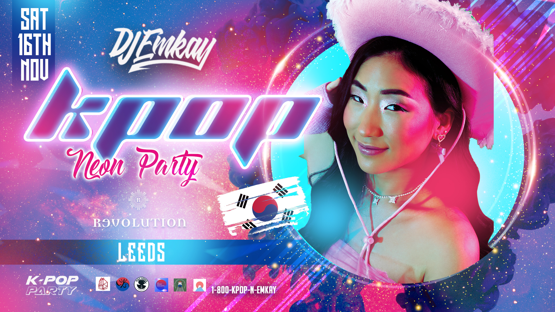 We welcome all kpop fans to another edition of K-Pop Party UK 'NEON RAVE' with DJ EMKAY!! We coming to Leeds!!