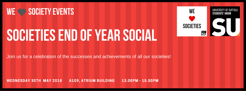 On Wednesday 30th May 2018 we will be holding the End of Year Social for all of our student-led Societies.