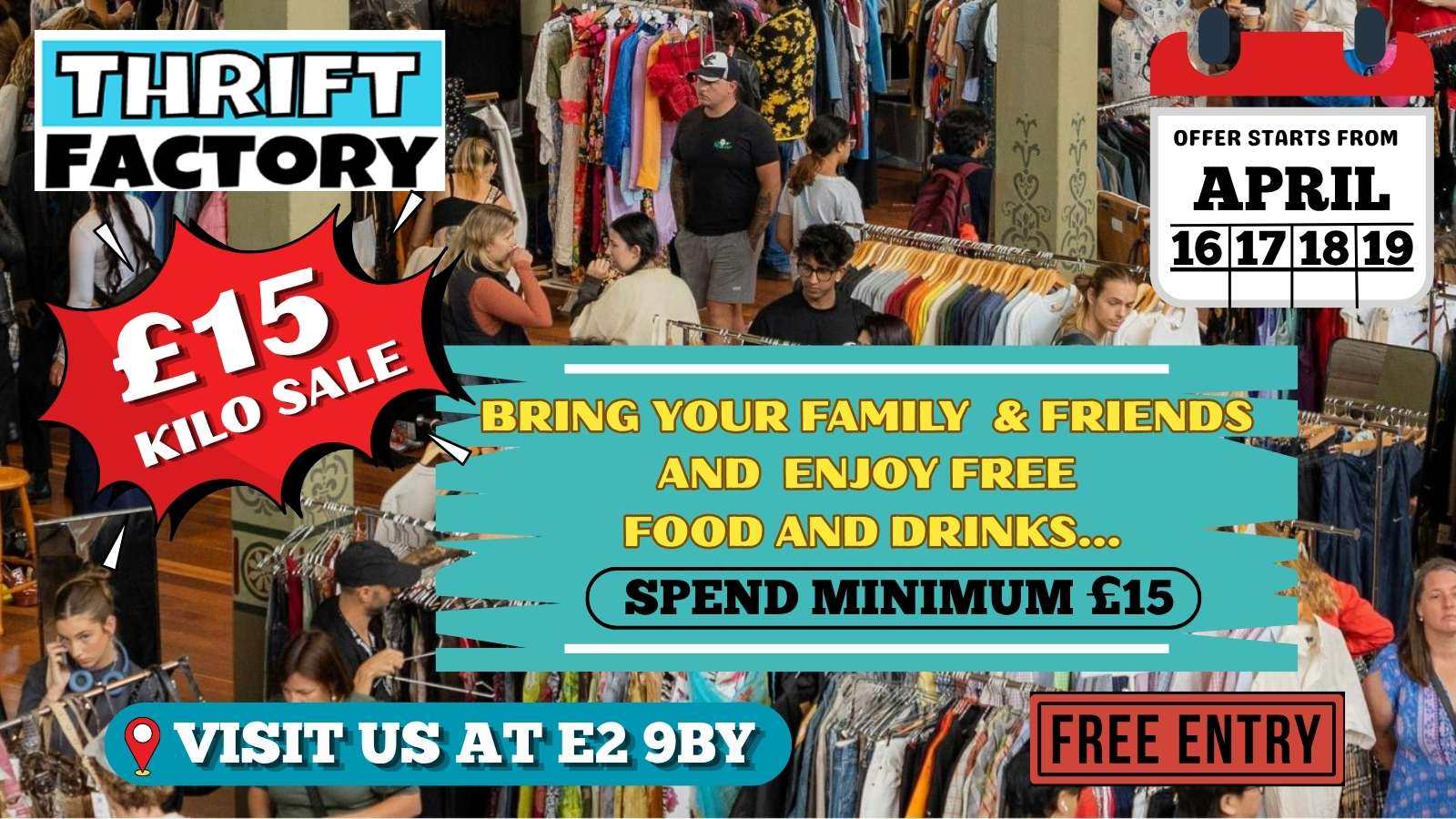 Looking for the best Vintage Sale in London? Join Thrift Factory from April 16-19 for a massive stock refresh! Grab high-end branded and vintage pieces at a fraction of the price—only £15 per kilo.