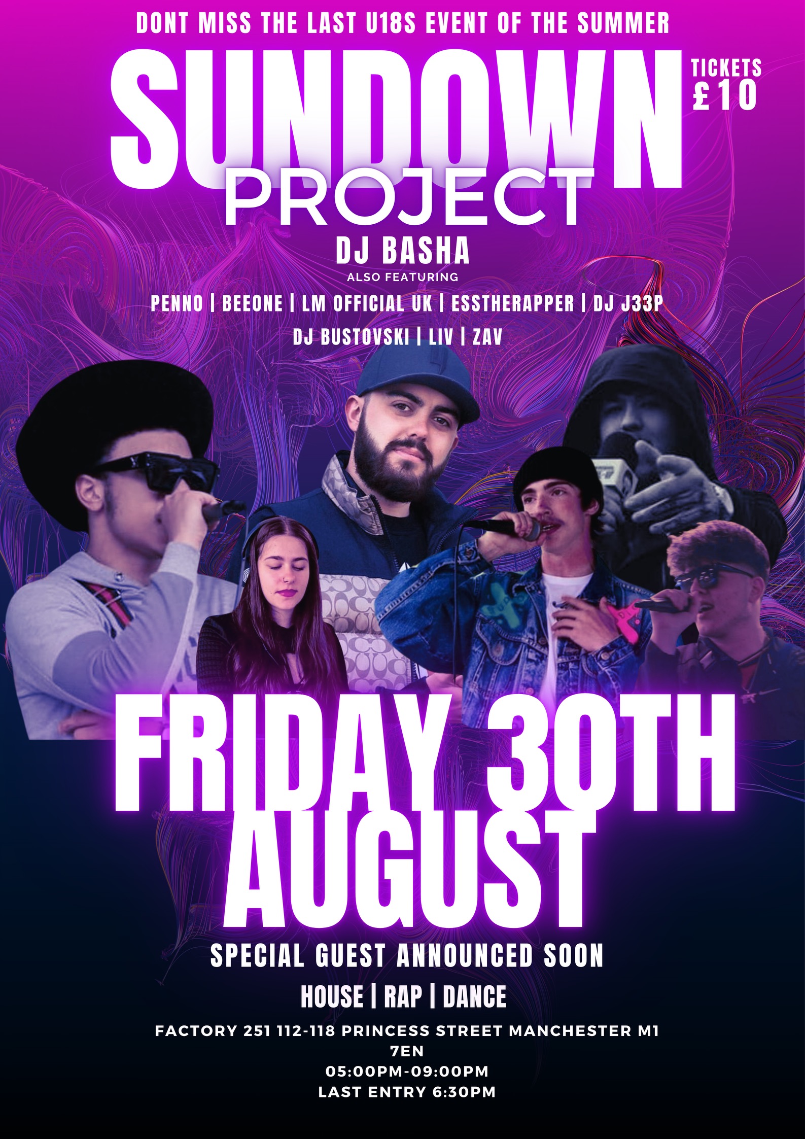 Sundown Project is an under 18s event taking place at Fac251 on the 30th of August 5-9pm.