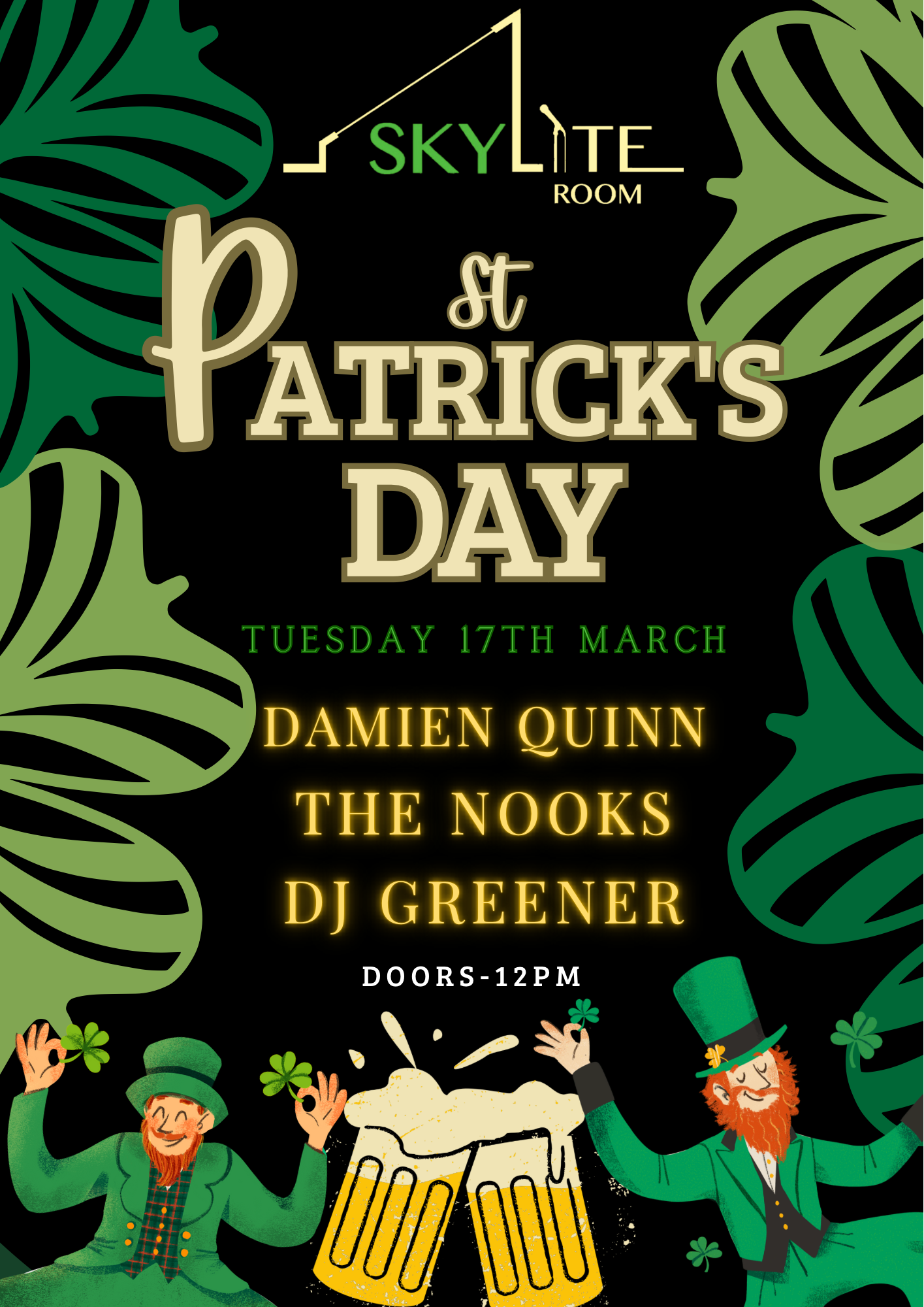🍀 Grab your friends, stick on your green and don’t miss the biggest Paddy’s Day party in the Skylite Room 🍀🔥