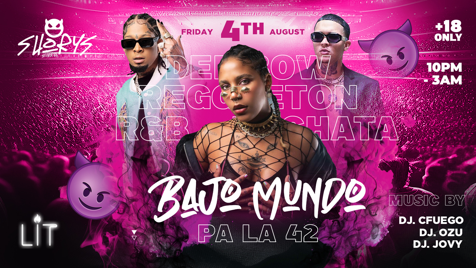 Our top Djs will be playing mainly DEMBOW but will also tune some variety of genres from REGGAETON, AFROBEATS, BASHMENT, SALSA, BACHATA, FUNK AND MANY MORE.