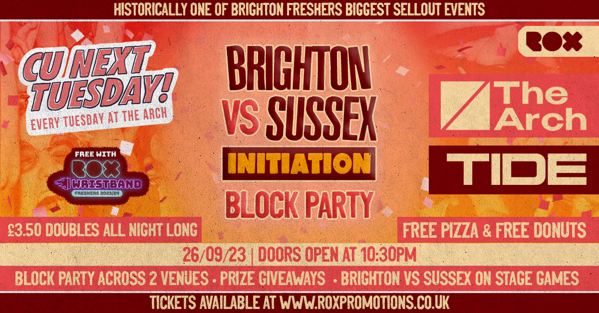 2 Venues to choose from, 4 rooms of music and a night full of raving and misbehaving @ The Arch AND TIDE nightclub on Brighton seafront.