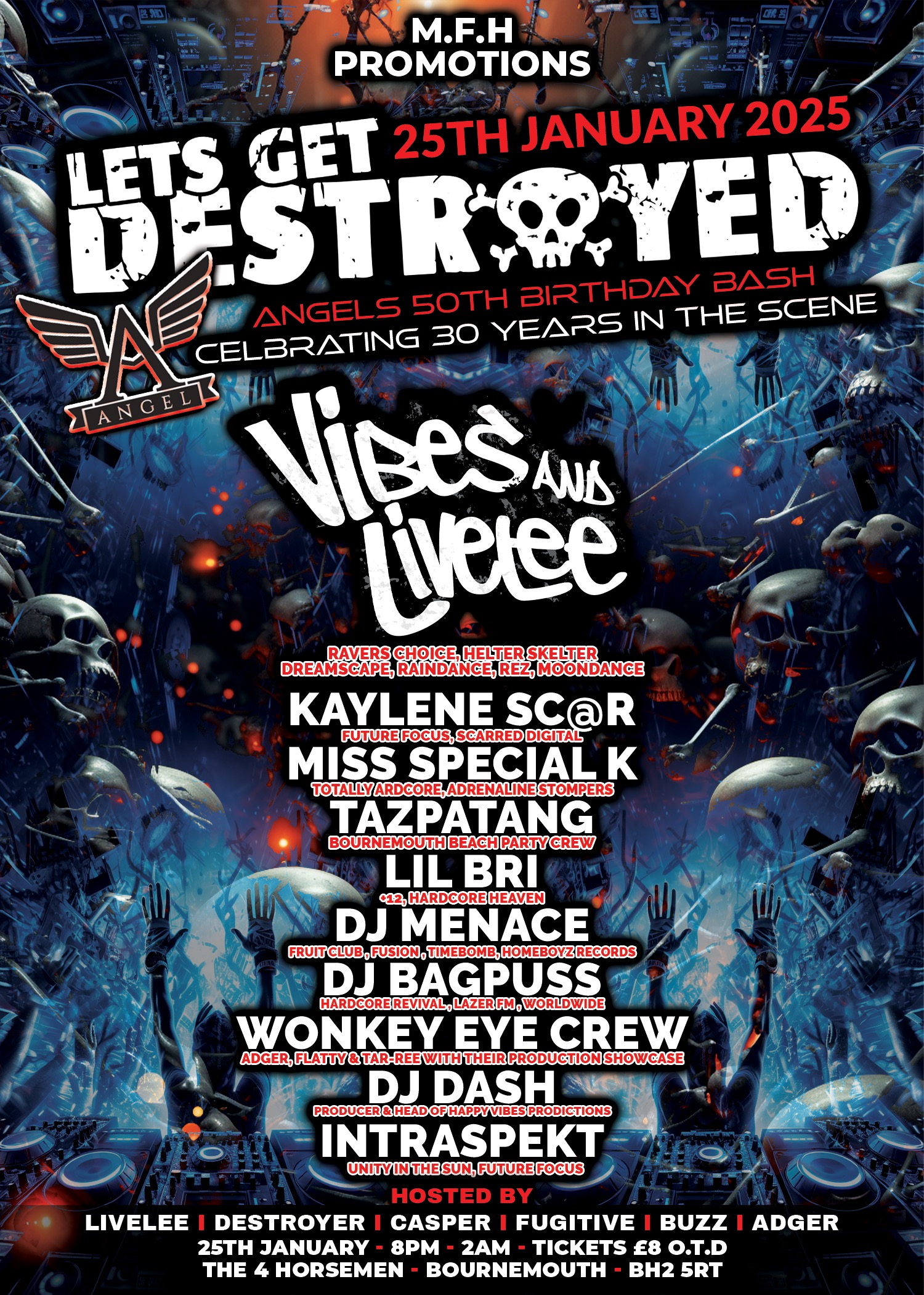 Let’s Get Destroyed is back with the first rave of the year with the Vibes and Live-Lee show and a host of top underground talent celebrating the career and 50th birthday of MC Angel