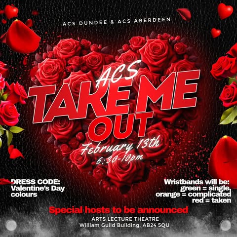 Aberdeen x Dundee ACS are bringing you a Valentine’s season event with games, banter, awkward moments, and real-time decisions made in front of a live audience. It’s inspired by the classic format, but done the ACS way.