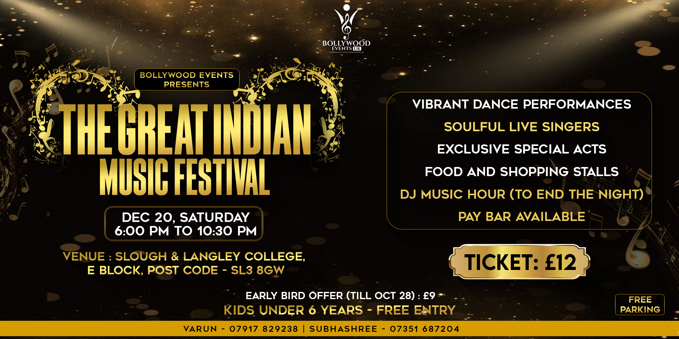 Get ready for an unforgettable evening of music, dance, and celebration as Bollywood Events UK proudly presents The Great Indian Music Festival 2025!