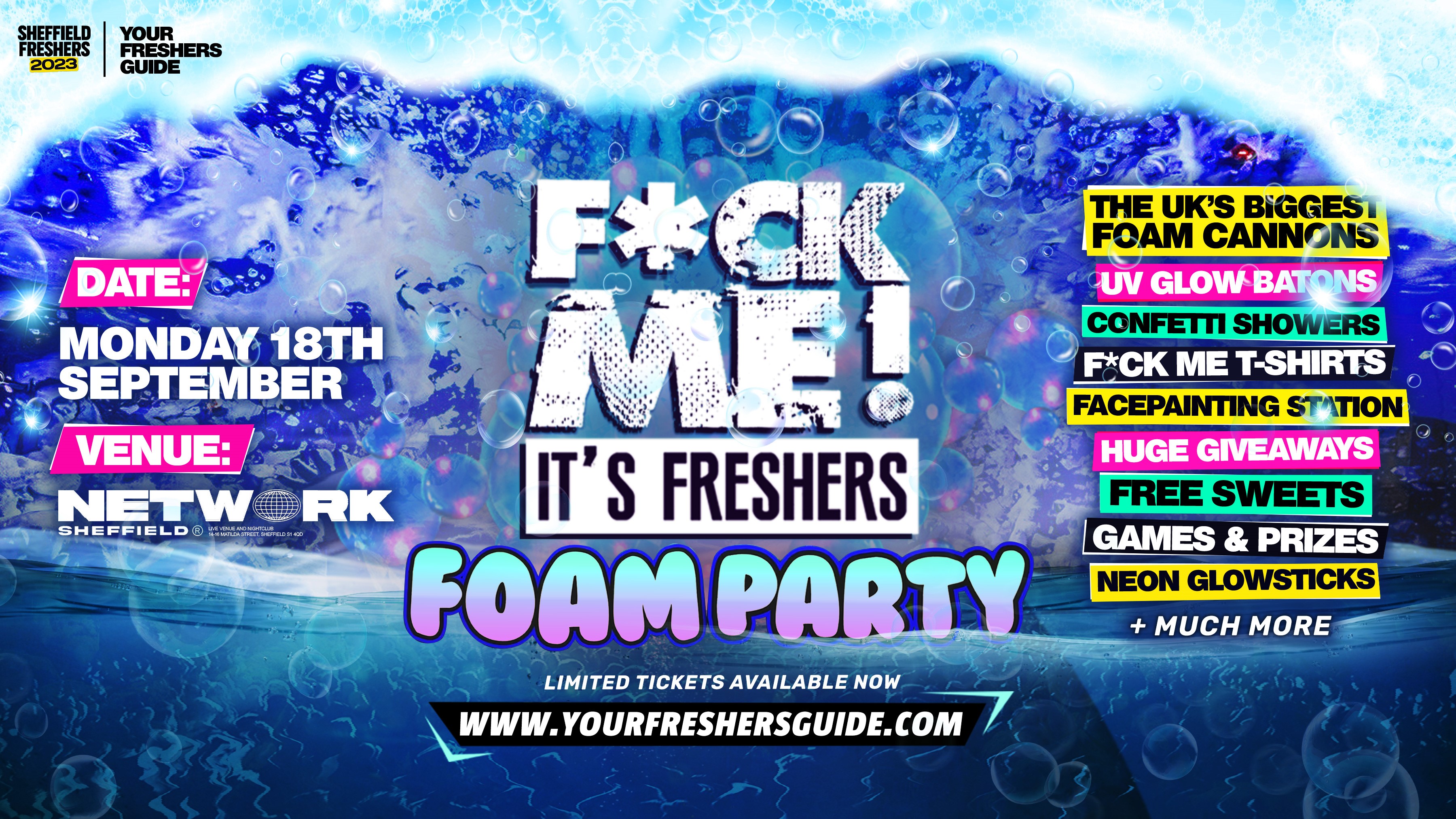 We'll be supplying a F**K load of FREE UV Paint, Neon Glowsticks & LED Batons to create a monstrous, immersive nightclub atmosphere like no other! With loads of party games, freebies, performers & entertainment, F*CK ME IT'S FRESHERS is truly a ONCE IN A LIFETIME experience!