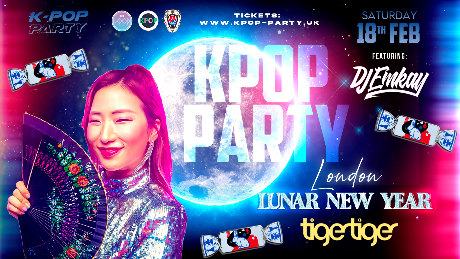 KPOP PARTY UK is back LONDON! After amazing events first event in the city and Fire and Neon Tours around the country we now bring UK's biggest KPOP Party again to London at Tiger Tiger! UK This time celebrating the LUNAR NEW YEAR!!