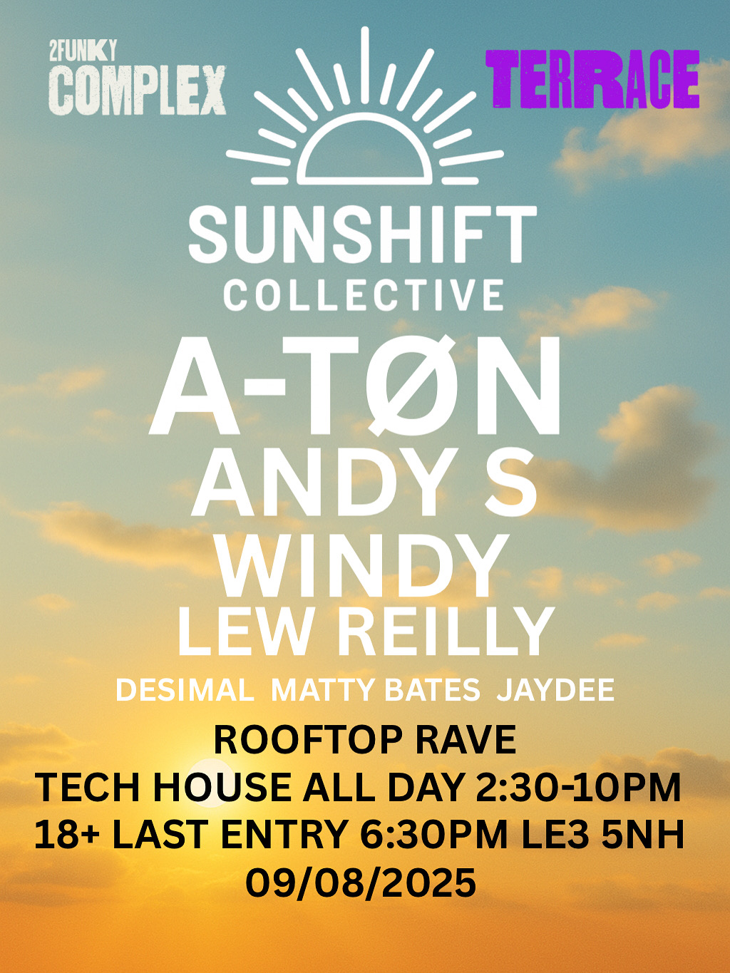 Sunshift Collective invites you to our very first rooftop day party, bringing the freshest tech house sounds and a buzzing Leicester crowd together at one of the city’s most exciting venues.