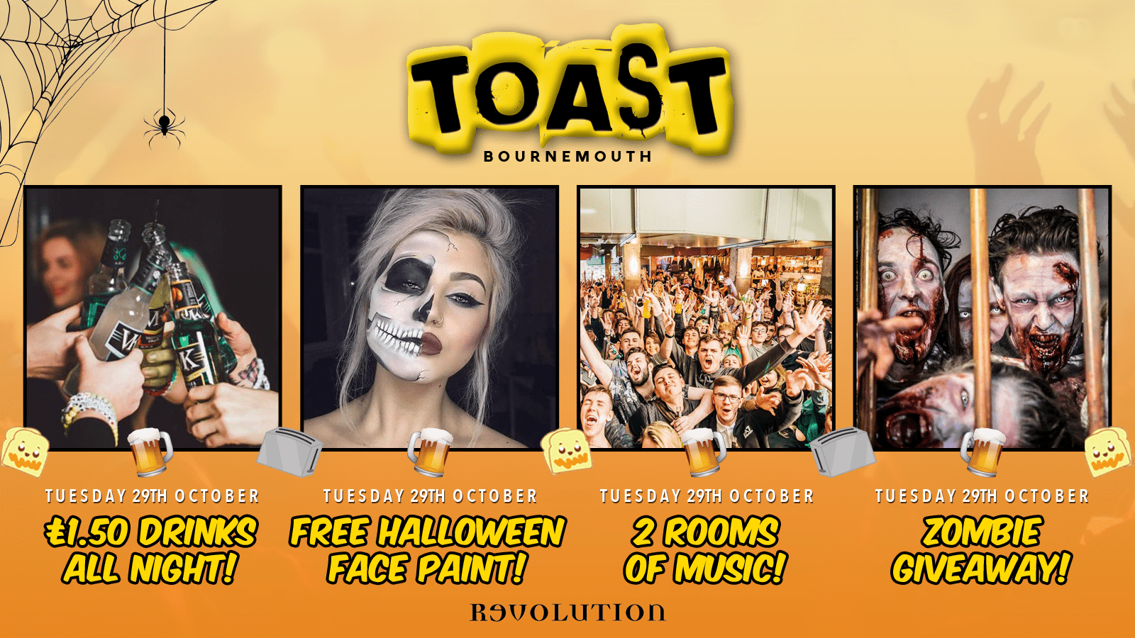 We will be taking over Revolution Bournemouth every Tuesday night with £1.50 drinks, HUGE prize giveaways and of course FREE Toast with toppings!