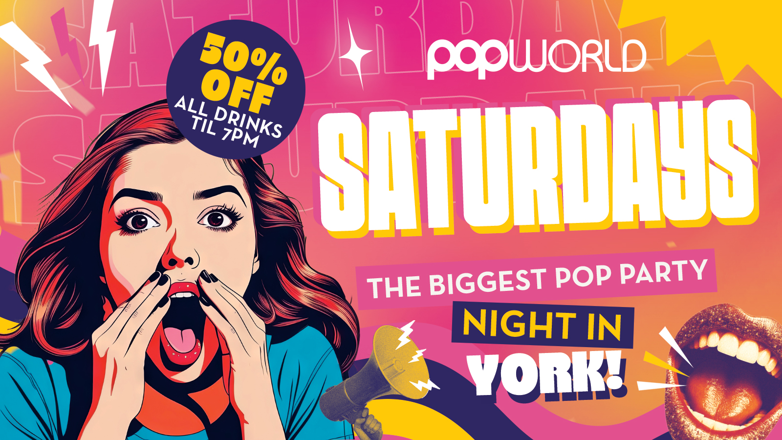 SATUR-YAY is SATURDAY! The biggest pop party in York is here, Bigger, Better and EARLIER than ever! Here for all you hen's and stags from the moment you step into York! Playing the party anthems from 2pm until you don't care what time it is!