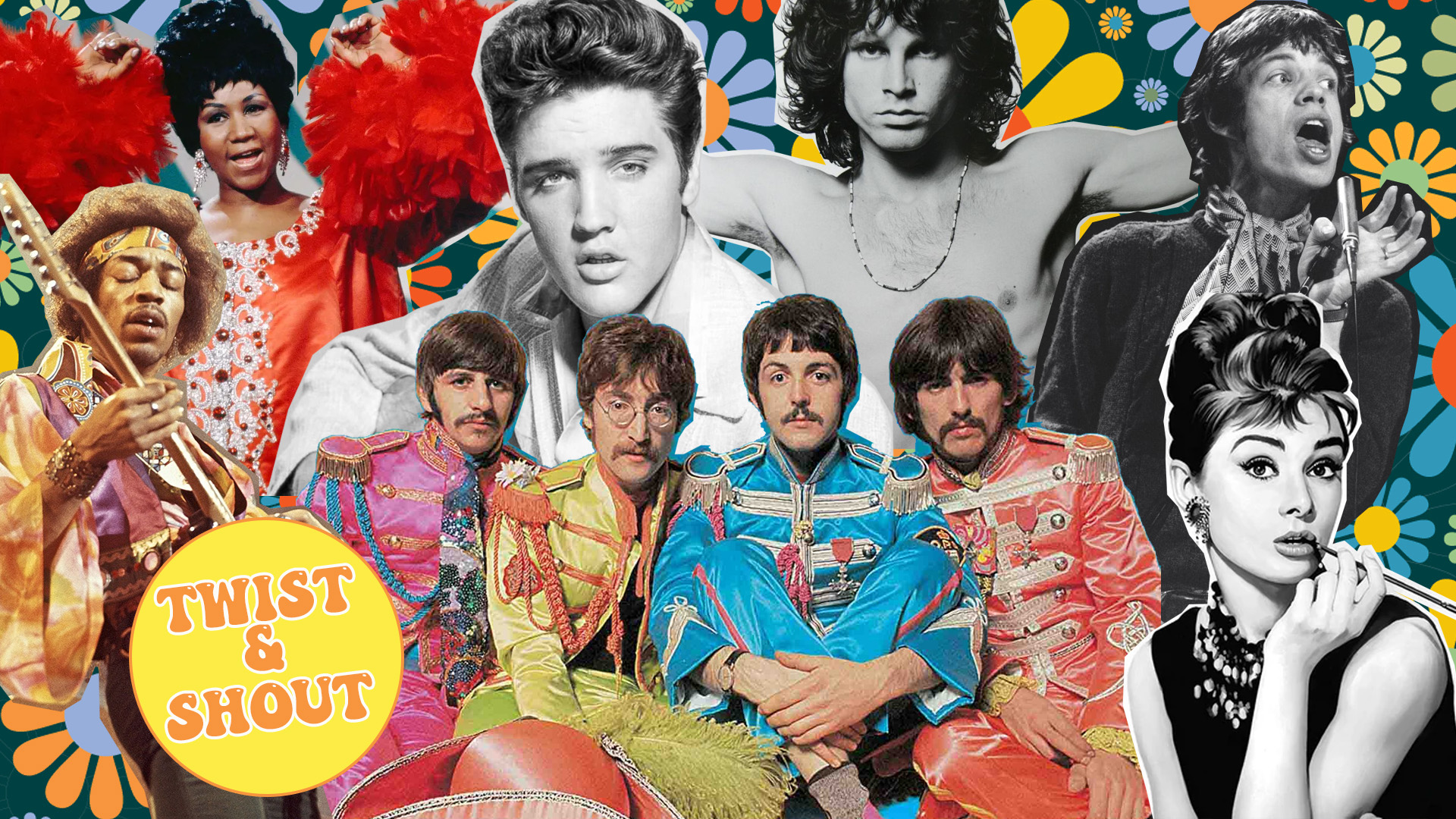 The Beatles / Beach Boys/ Elvis/ Jimi Hendrix/ The Doors/ Rolling Stones/ Chuck Berry/ Bob Dylan/ Sam Cooke/ Van Morrison/ Aretha Franklin/ Marvin Gaye/ Ben E. King/ The Who/ The Monkees/ The Kinks/ Dion/Johnny Cash/Cream/ Four Tops/ Tom Jones/ The Temptations/ Stevie Wonder/ Frankie Valli & The Four Seasons/ The Supremes/ The Jackson 5 Nancy Sinatra/ The Sonics/ Small Faces/ Northern Soul and all your favourite acts from the swinging 60s!