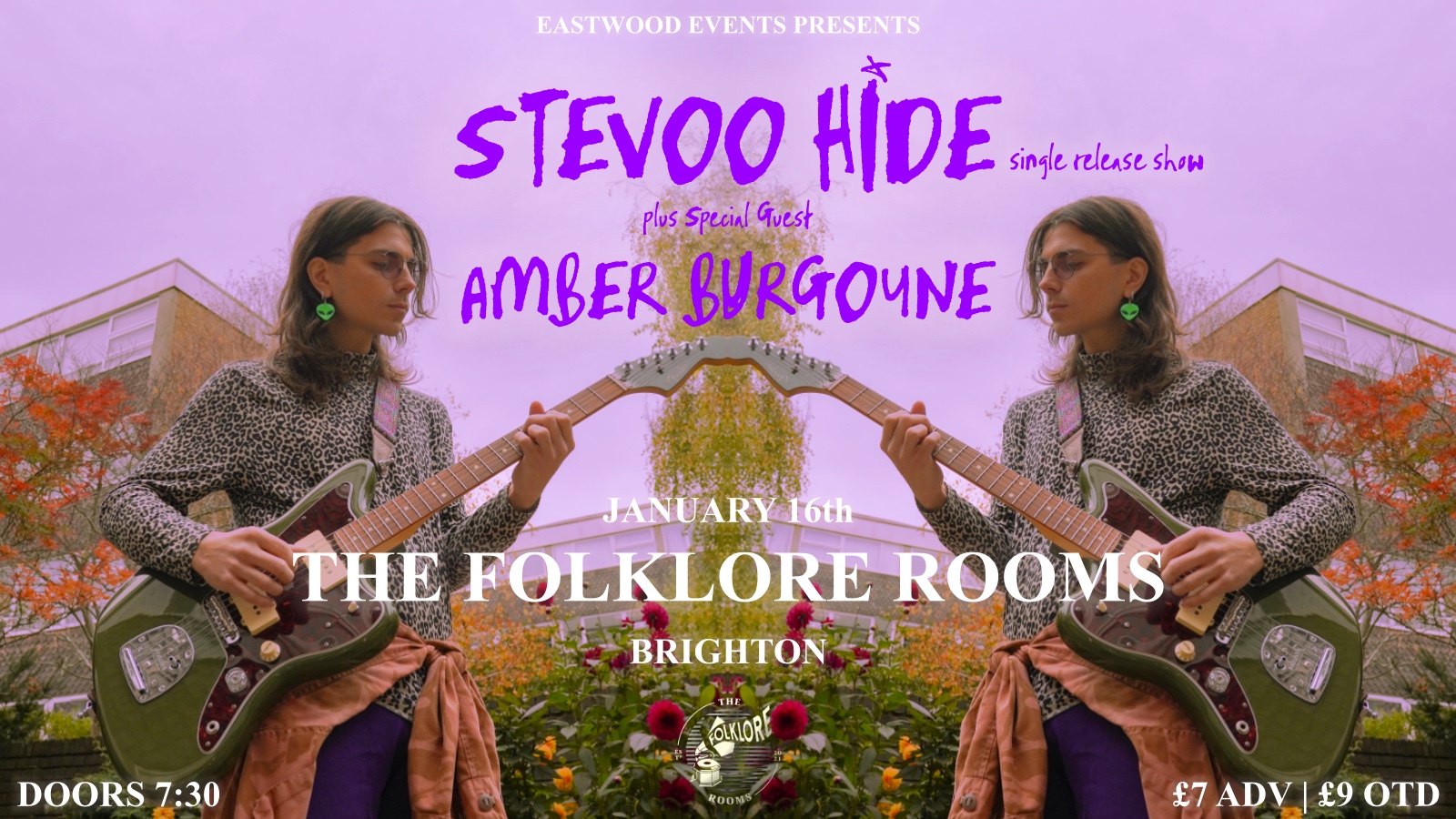 Eastwood Events presents: ' Stevoo Hide's Single Release Show'. Held at The Folklore Rooms, in Brighton, on Friday 16th January 2026, Stevoo Hide will be headlining the evening, with special guest support act Amber Burgoyne and opener act Azaria Franco !