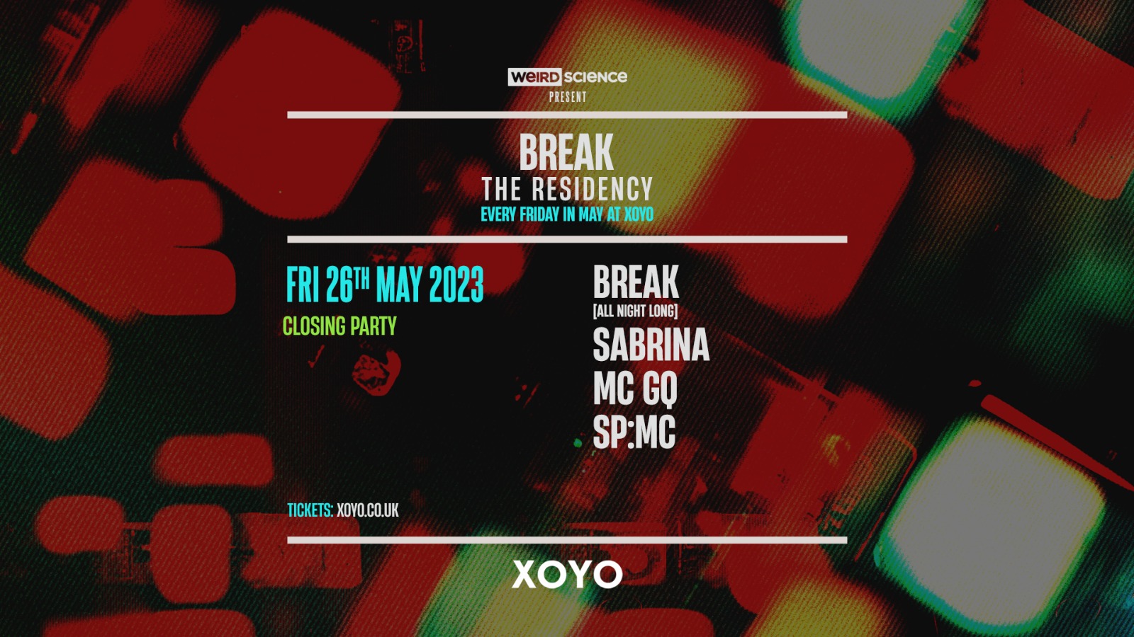 "I'm super hyped about the Residency in May. There's a bunch of my favourite artists involved and we've got something different each Friday to look forward too. XOYO is one of my favourite clubs in London, it's a perfect size for proper vibey nights... it's gonna be sick!" - Break
