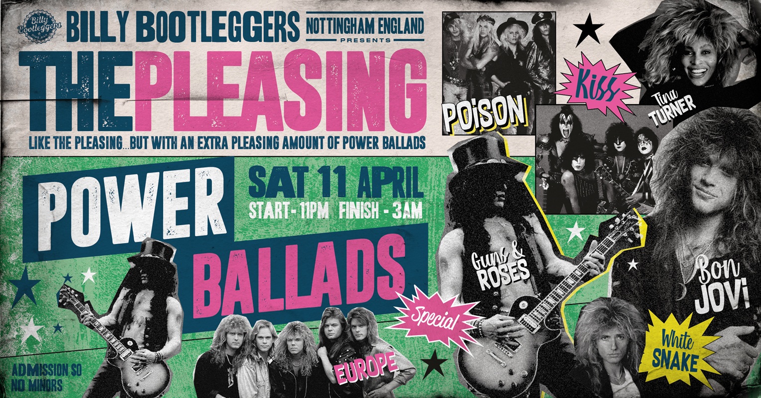 Expect to hear the biggest power ballad hits from..... POISON / GUNS N' ROSES / KISS / EUROPE / BON JOVI / TINA TURNER / WHITE SNAKE / AND LOADS MORE!!!