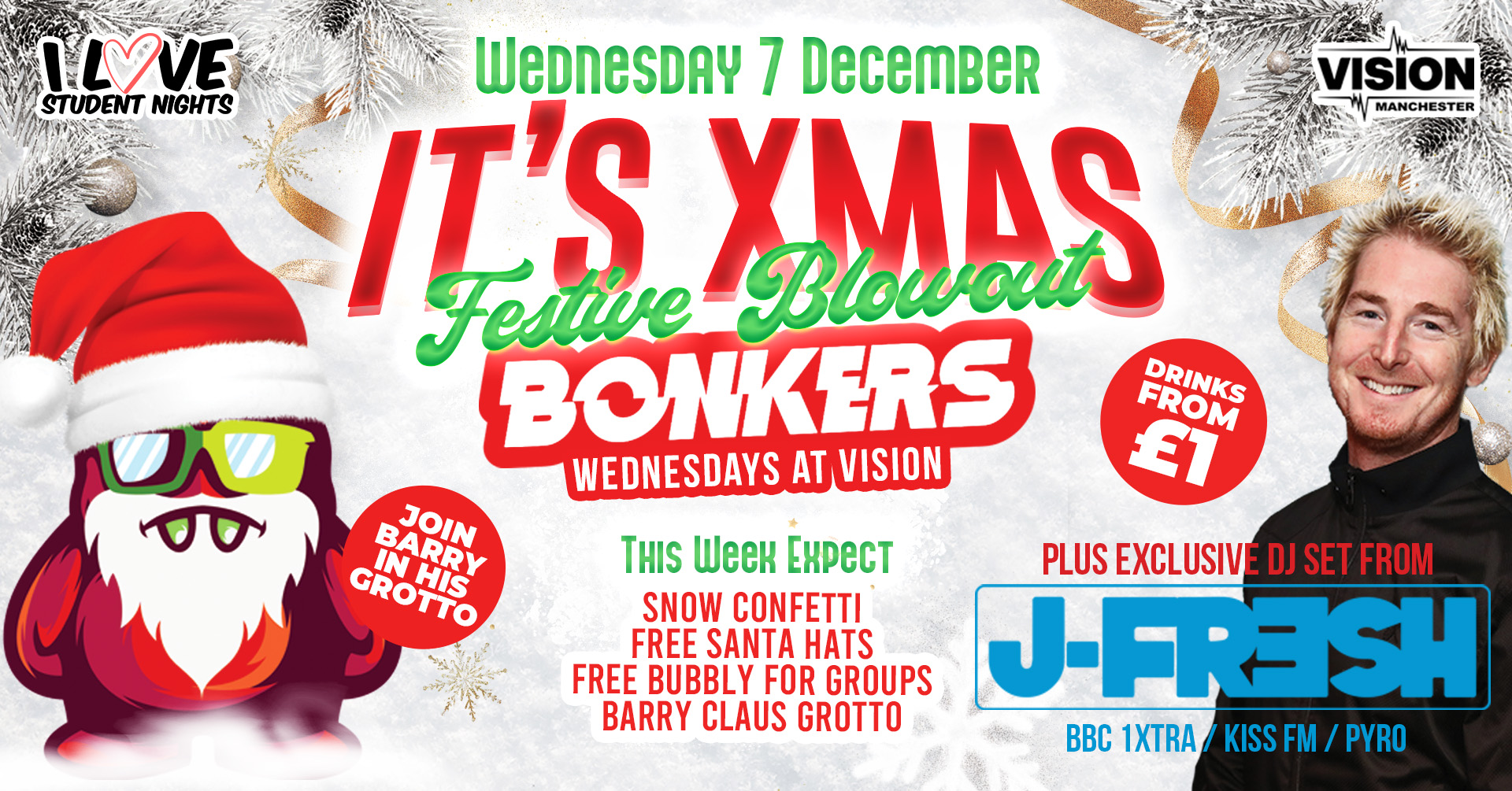 Join us this Wednesday for the biggest Wednesday Xmas party in Manchester with an exclusive DJ set by Radio 1Xtra & Kiss FM superstar J-Fresh.