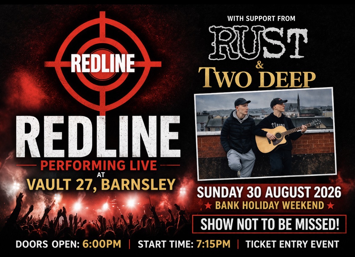 Support Artists include Rust - an amazing up-and coming heavy rock/metal band based in Barnsley/Sheffield Area and Two Deep - a fabulous upcoming acoustic duo from Barnsley.