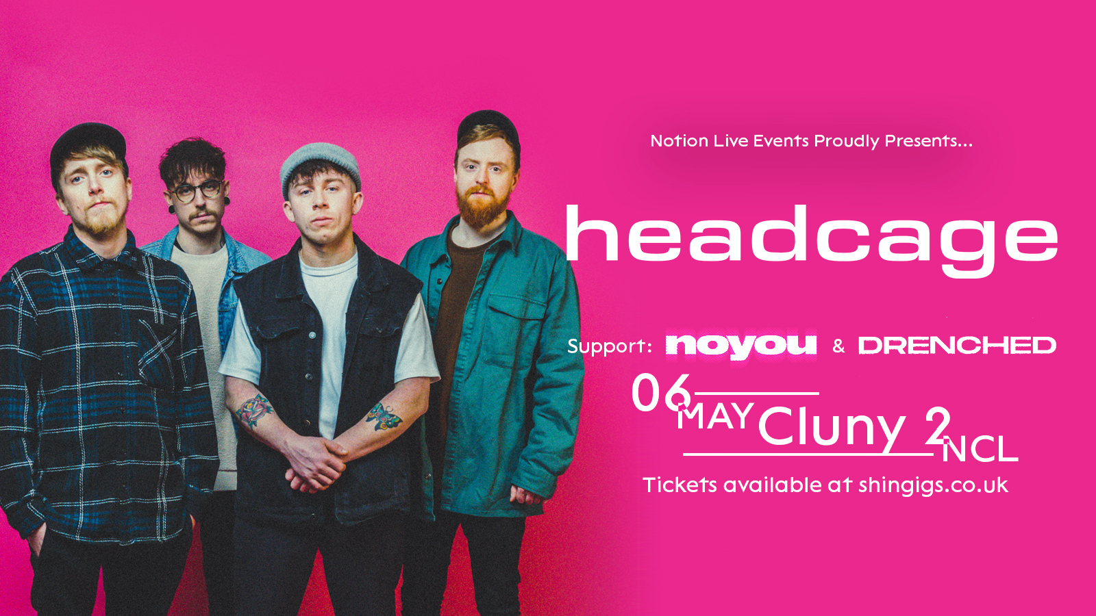 ‘headcage’ encapsulates years of meticulous process, blending colossal, riff driven instrumentation with fiercely melodic and incredibly vulnerable vocal crooning. With influences that lie within the early noughties Post-Hardcore, Emo & Metal brackets, ‘headcage’ present their contemporary interpretation of the styles and sounds that shaped their musical endeavours, pulling no punches in delivering bone crunching low-tuned riffs yet simultaneously offering very controlled and intensely melancholic lyrical content. ’headcage’ proudly display their adoration of the Hard Rock/Alternative scene with a truly authentic representation of themselves as musicians and people. Hailing from Newcastle Upon Tyne (UK), the Post-Hardcore 4-piece have garnered strong attention from Radio 1’s Nels Hylton with all of their first four singles being featured on his Future Alternative show, multiple singles featured as ‘track of the week’ and being included in the top tracks of the 2022 rundown. ‘headcage’ has also been broadcast by Alyx Holcombe on her Radio 1 Introducing Rock Show. ‘headcage’ firmly cement themselves as ones to watch in both their regional and national Rock circuits, by being included in BBC Introducing’s Top Tips for 2023. Moving forward into 2023, the band intends to keep building on the sharp momentum they have achieved by releasing their strongest musical output to date and establishing themselves as a formidable live act.