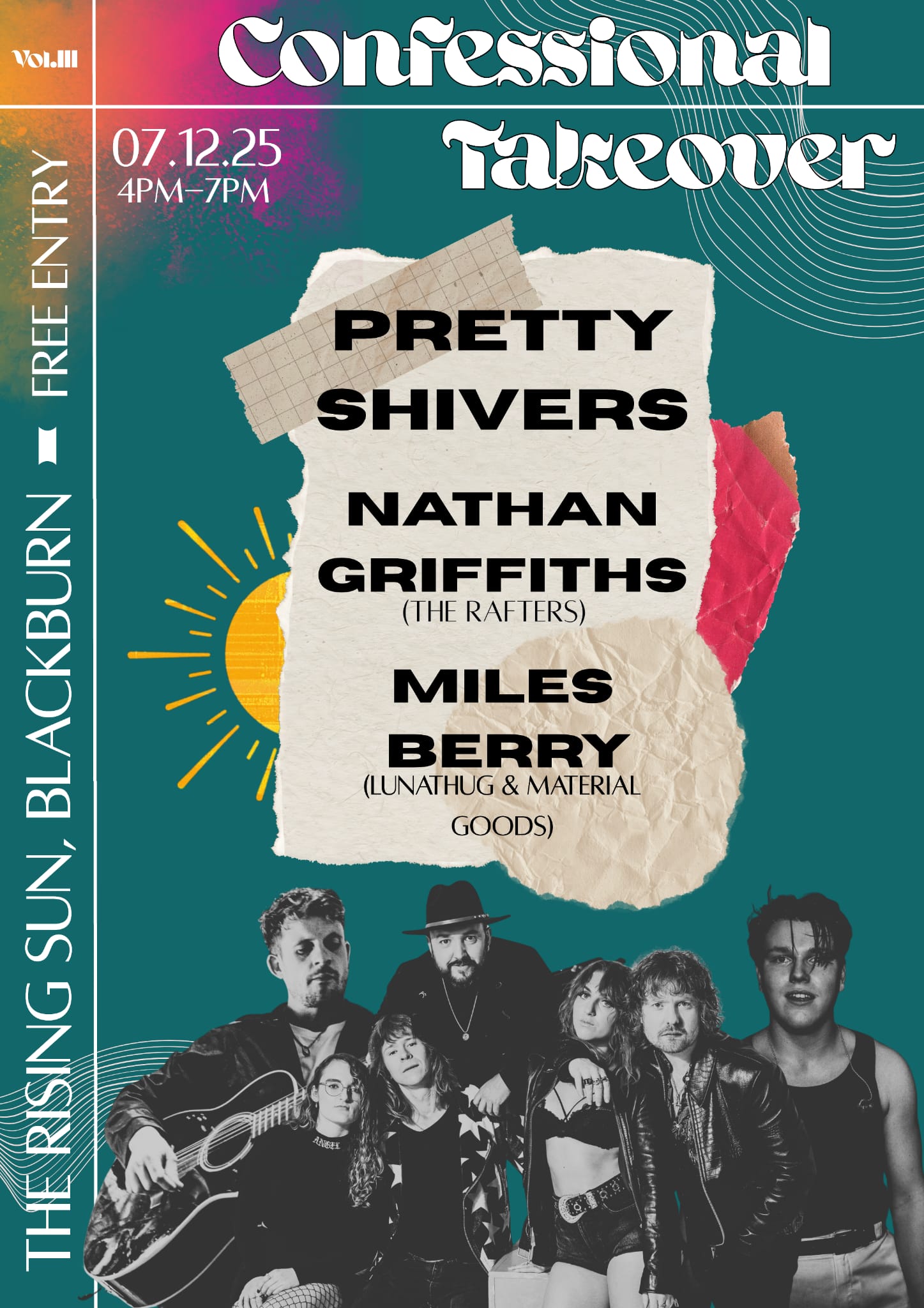 Confessional takes over The Rising Sun in December, with live music from Pretty Shivers, The Rafters' Nathan Griffiths and Miles Berry, of Luna Thug and Material Goods.