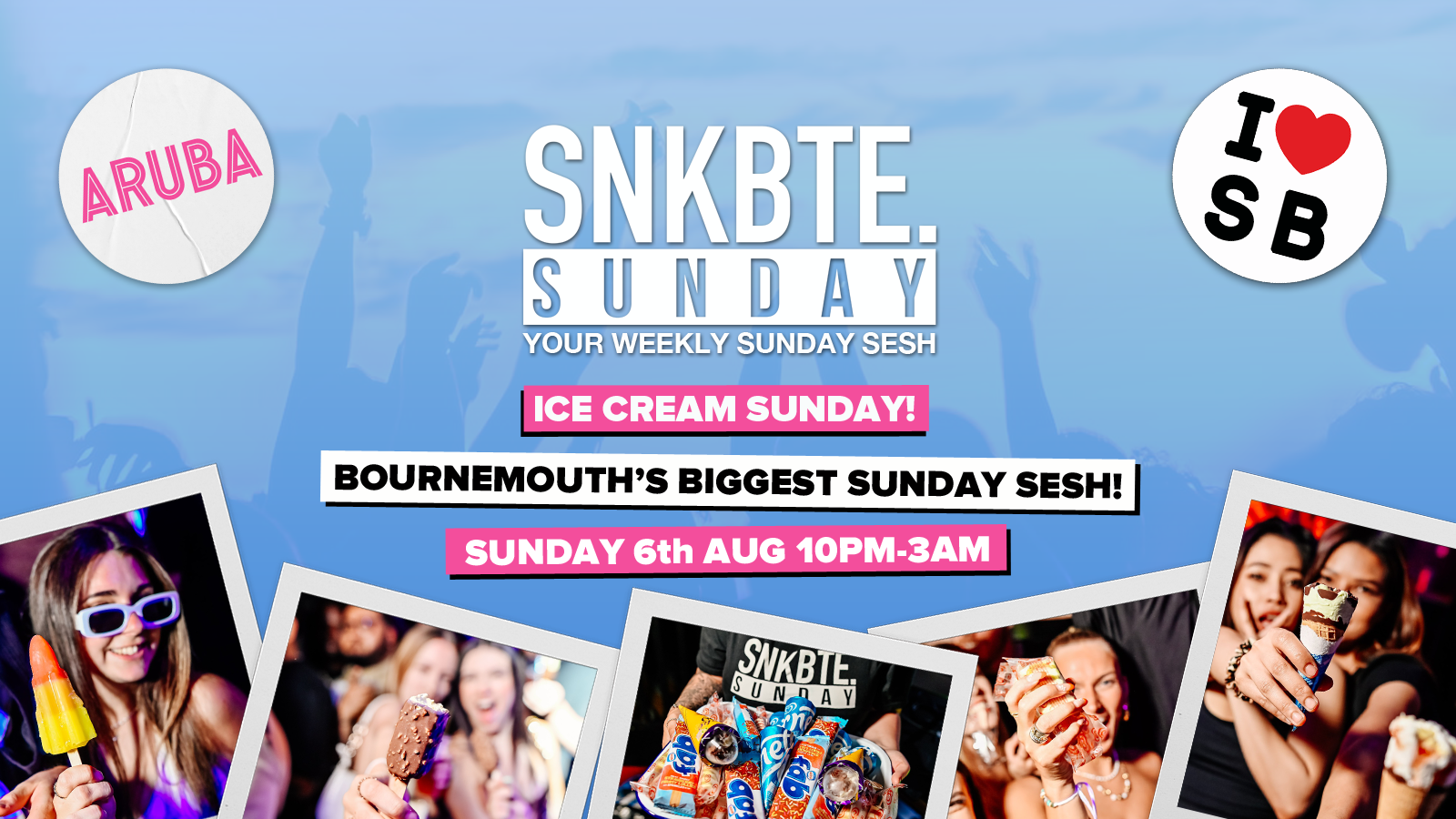 This Sunday we're throwing it down with ice cold party anthems, sizzling summer sing-a-longs, shot limbo, confetti showers and 100's of free ice creams delivered fresh to the Aruba dance floor. So now you get ice cream and Snakebites on the beach, what more could you want? 😍