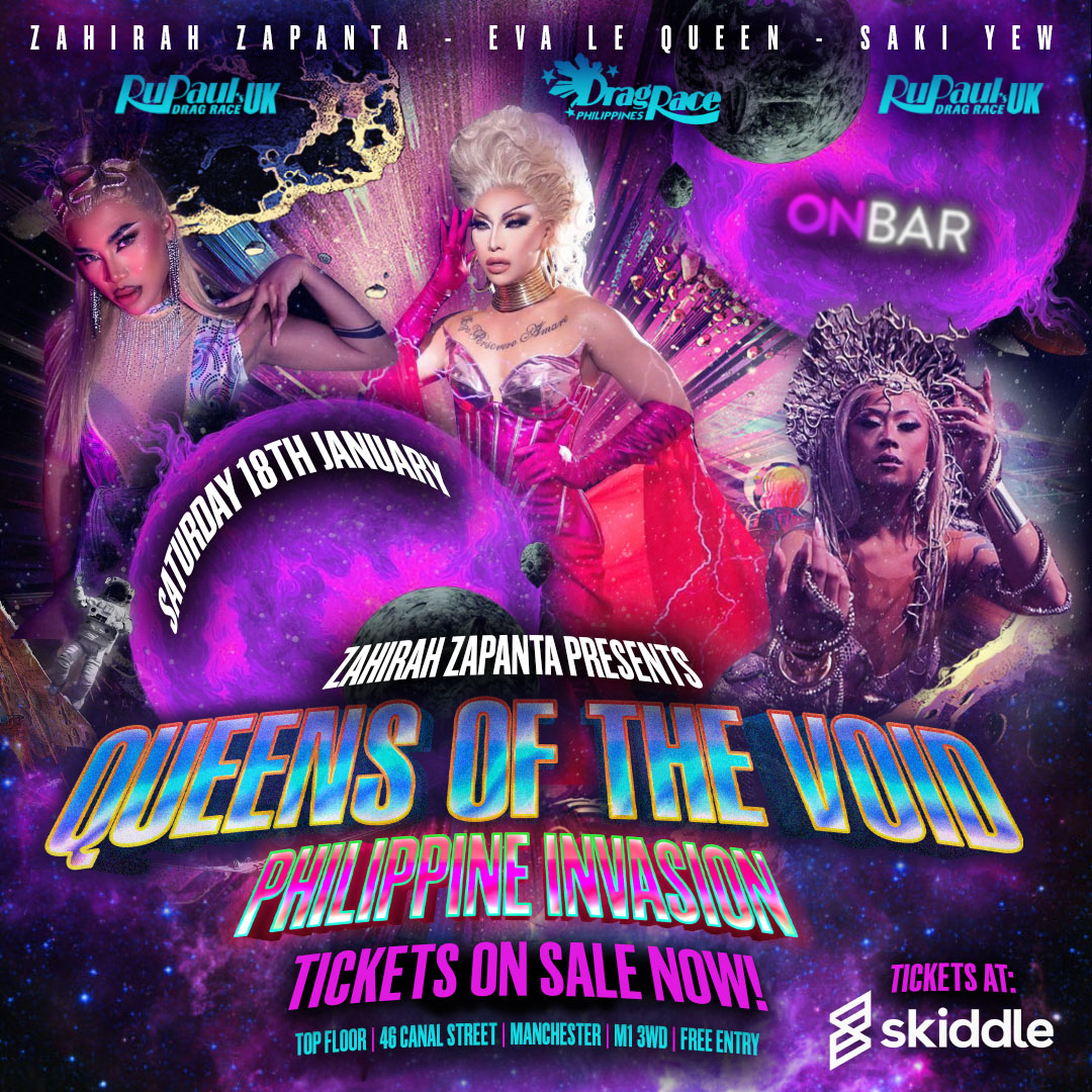š¤ Fresh off the stage of RuPaulās Drag Race UK Season 6, Zahirah Zapanta is ready to serve her signature blend of charisma, uniqueness, nerve, and talent. Joining her is the fabulous Eva Le Queen, a fan favourite from Drag Race Philippines, whoās flying in to show Manchester what true Philippine drag royalty looks like. And as a special treat, Saki Yew, Zahirahās Season 6 sister, will also be gracing the stage with her jaw-dropping looks and high-energy performances.