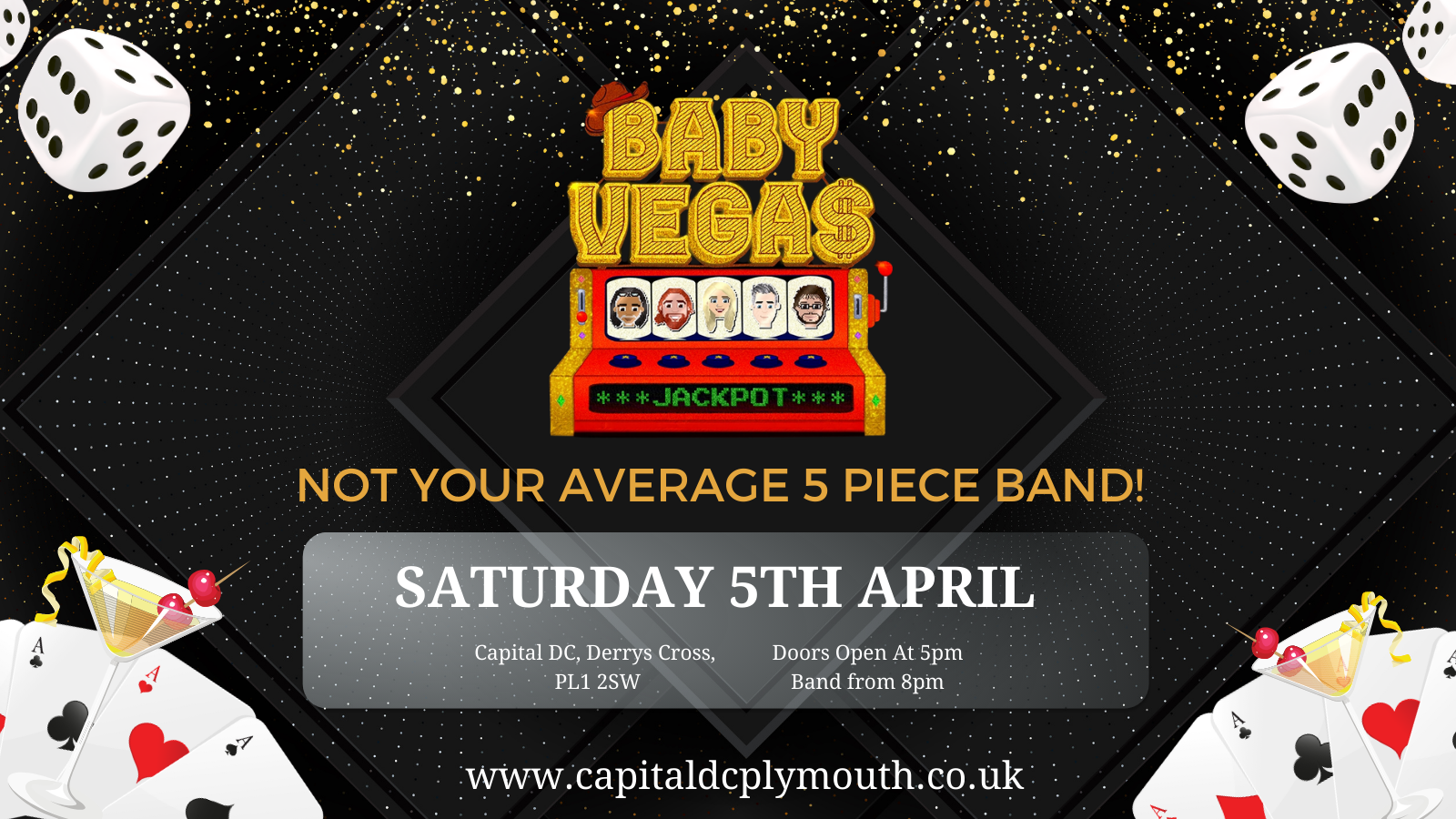 Get ready for an unforgettable night with Baby Vegas! This isn’t your average 5-piece band – they’re bringing energy, creativity, and a one-of-a-kind performance you won’t want to miss.