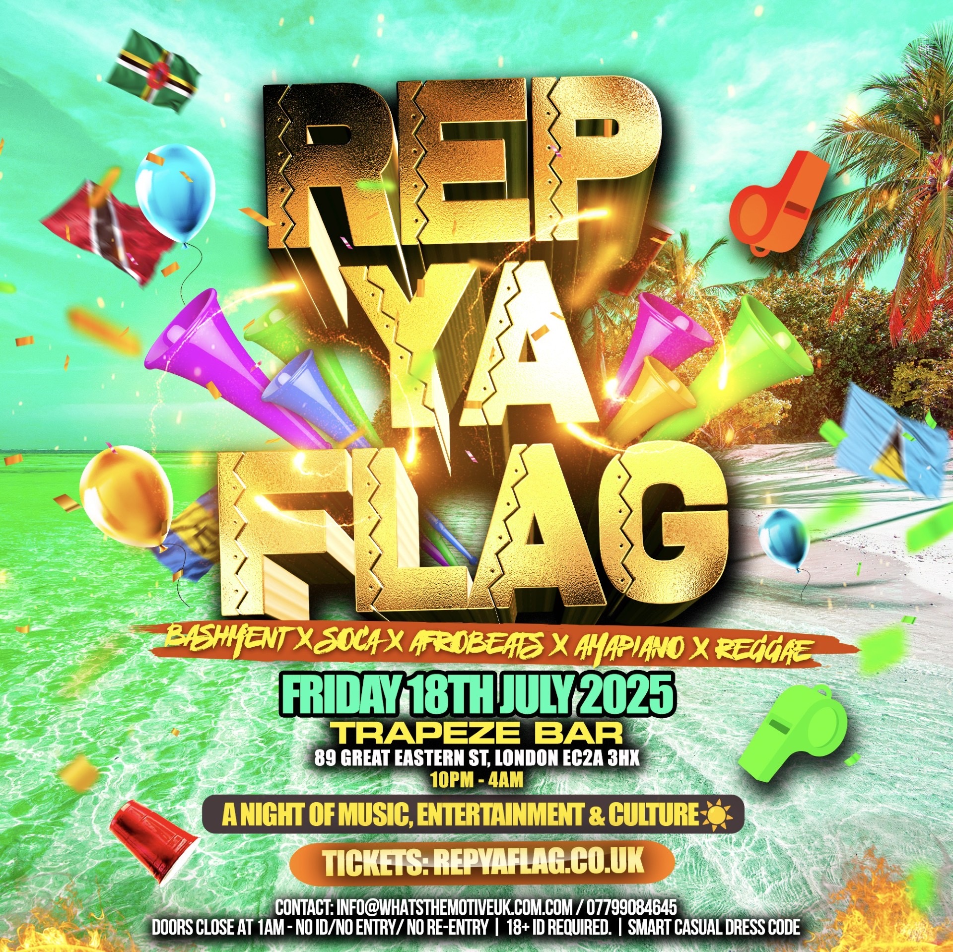 Join us for REP YOUR FLAG for the Biggest Carnival-themed experience in the UK. Expect a total celebration of music, entertainment and culture. Expect to hear the REAL Afrobeats/Bashment/Soca from across the decades to the current party bangers. 🎵 🎵 🎵