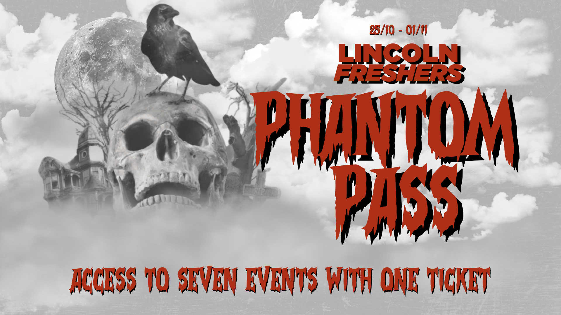 Get ready for a hauntingly unforgettable Halloween with the Phantom Pass! This exclusive ticket grants you access to SEVEN thrilling events across multiple venues, taking place from October 25th to November 1st. Whether you’re a fan of spooky parties, immersive haunted experiences, or eerie performances, the Phantom Pass gives you the ultimate Halloween adventure.