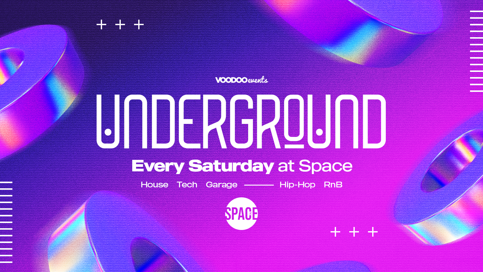 Join us each and every Saturday as we take you Underground. Saturdays have entered a new era… Your weekend fix of the legendary venue, The Space, will take you on a musical journey of floorfillers and anthems that will have you dancing all night long.