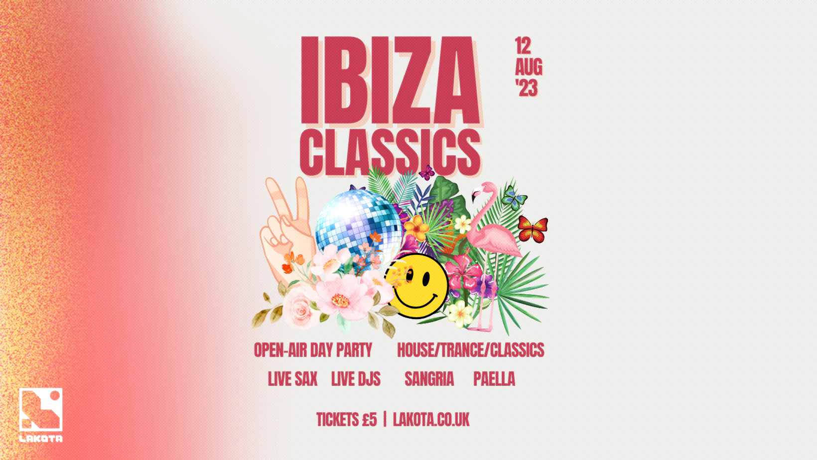 Join us for an open-air day party that will transport you to the heart of Ibiza, right here in the heart of Bristol. This is an experience not to be missed, as we honour the legacy of the White Isle and bring its essence to life in our very own Lakota Gardens.