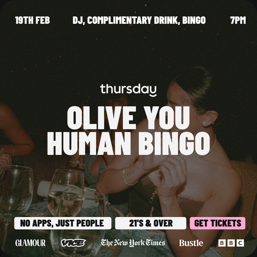 While you're playing, enjoy beats from our DJ spinning all night, along with a special drink menu designed for the evening. As a thank you from Thursday, we encourage each guest to choose one complimentary cocktail from our event speciality drink menu to get the conversation flowing. This isn't about speed dating or forced connections; it's about having fun, playing a game, and seeing who you naturally vibe with while hunting for that winning row.