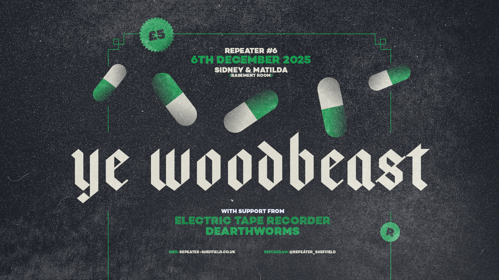 Ye Woodbeast's sound feels like it was recovered from an antique suitcase buried under a century of rain-soaked folklore. They'll make a rainy-cold Saturday night in Sheffield feel mythical. Percussion, melodies, and harmonies punctuate intricate arrangements where nothing is wasted and everything carries weight. Their ship-sinking frequencies are your guide. A guide that hastens the drift into a narrative world that doesn’t quite belong to this one. Trust us, seeing and hearing, is believing.